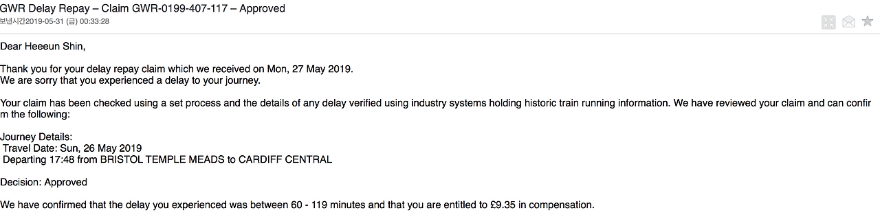 영국은 기차가 과점 형태로 모두 민영화돼 있기 때문에 내가 이동하는 지역마다 다른 회사의 기차를 타게 되는 경우가 많다. 최근 4월쯤 Great Western Railway 회사에서 Delay repay 서비스를 시작했다. 기차가 정시에 도착하지 않고 어떤 이유로 출발이 지연되거나 취소될 경우엔 회사 홈페이지에 들어가서 지연 보상금을 신청할 수 있다.