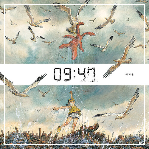 <9:47>은 그림책이기에 가능한 독특한 점들이 있습니다. 우선 제목 '9시 47분'은 현재의 환경 위기 시각을 의미합니다. 환경 전문가들은 12시가 세계 종말 시간이라고 말합니다. 겉표지의 9시 47분이라는 숫자는 한가운데 위치하고 있지만 서서히 무너져 내리는 것 같이 표현되어 위기감을 고조시킵니다. 그림책은 가로×세로 30cm로 제법 큰 정사각형의 판형에 총 90쪽으로 생각보다 묵직한 외관입니다. 그림책은이미지로 이야기를 전달하는 매체라는 작가의 생각 그대로, 글자는 없지만 시간을 나타내는 숫자가 등장합니다. 그럼에도 불구하고 파도, 갈매기, 사람들의 떠들썩함, 바람 등등 펼쳐지는 모든 면에서는 소리가 들리는 듯합니다. 정지된 화면이지만 마치 움직이는 애니메이션을 보는 듯한 착각도 듭니다. 한 페이지, 한 컷마다 이기훈 작가가 얼마나 최선을 다했는지 생생하게 느낄 수 있습니다. 또 하나는 구성입니다. 영화나 드라마에서 자주 등장하는 타임슬립 형식을 띠고 있습니다. 어느 한 페이지부터 이야기는 끝이 아닌 시작으로 마치 뫼비우스의 띠처럼 연결됩니다. 마지막으로 놓치지 말아야 할 장면은 속지를 넘기자마자 등장하는 통영항 여객터미널 모습의 익숙한 듯 낯선 풍경입니다. 영화에서 처음 등장하는 시퀀스가 영화의 세계관을 보여준다는 것을 기억한다면, 이기훈 작가는 <9:47>이 가지고 있는 허구인 상상의 세계를 그럴듯하게 시작합니다. 물론 독자가 처음부터 그것을 깨닫지 못하도록 매우 자연스럽게 그려놓았습니다.