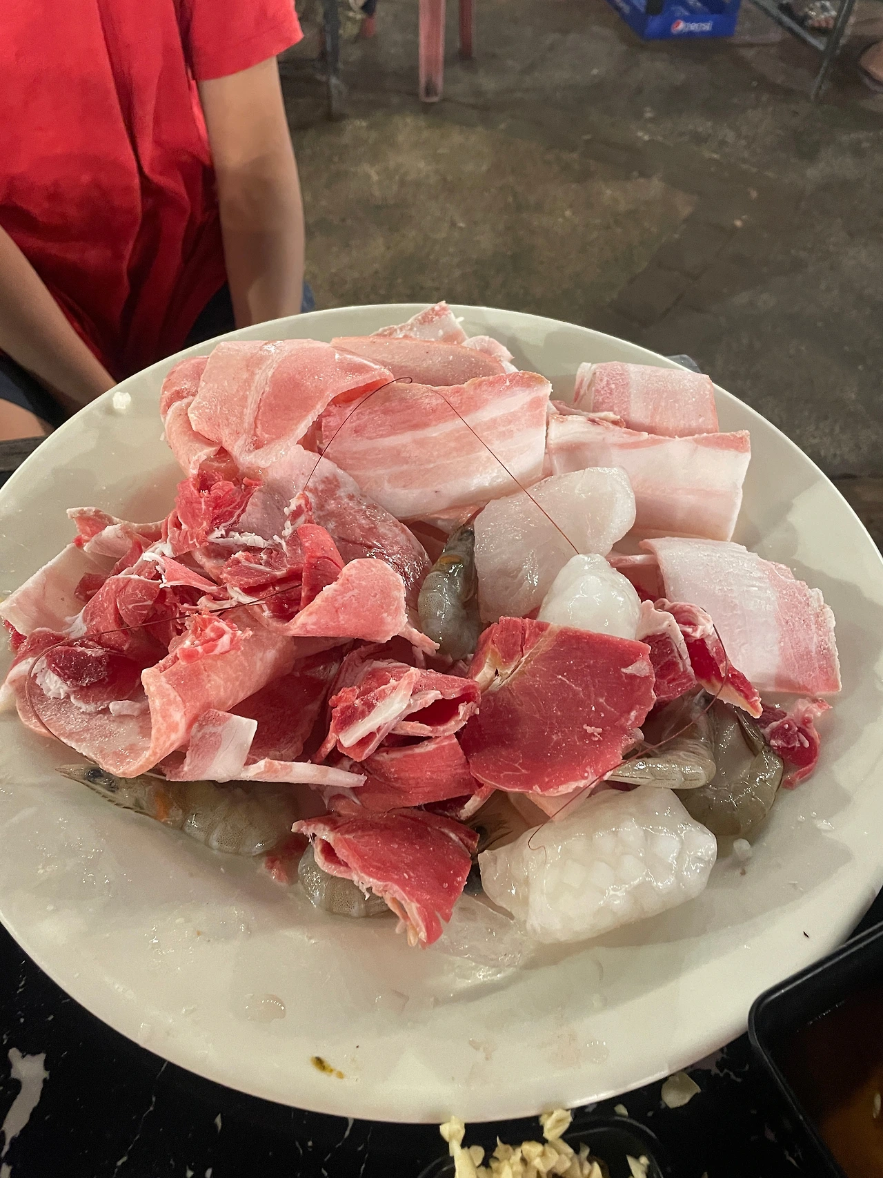 미니밴에서 내렸는데 숙소까지 1.5km다. 차를 타기에도 애매하고 막상 기사들과 흥정할 여력도 없어 깔끔하게 걷기로 하고 쉬엄쉬엄 걸어 숙소에 도착했다. 아이들은 수영장에 수영을 하고 나는 또 오토바이를 빌리러 나갔다. 미니밴 내린 곳까지 걸어 오토바이를 빌리고 혼자 비엔티안을 잠시 둘러보았다. 10년 만에 나처럼 많은 것이 변해있었다. 숙소로 돌아와 아이들을 태우고 저녁을 먹으러 갔다. 예전엔 신닷이라 불렸던 고가를 구워 먹는 시스템인데 구글 지도를 켜고 뒷자리 첫째에게 안내를 맡기며 이동했다. 태국은 오토바이에 거치대가 다 있었는데, 라오스는 거치대가 없어 불편하다. 도착한 식당은 야외였는데 마치 옥토버 페스트 장소만큼 넓고 자리도 많았다. 이곳은 무제한으로 운영되는 곳이라 일단 야무지게 먹을 것을 다짐하며 음식을 시켰다.
