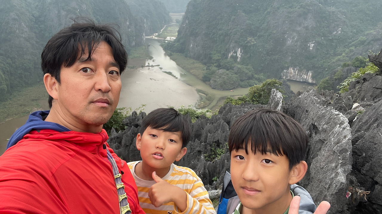 20년 전 군대 후배와 첫 배낭여행을 했을 때, 12월 말 게스트하우스에서 베트남 나이키에서 일하는 한국인을 만나 에스페로를 빌려서 닌빈을 여행했던 기억이 난다. 그때와 비교하며 아이들에게 설명을 해주고 잠시 추억에 잠겨 보았다. 그때와는 달리 나무배는 철 배로 바뀌어 있었고 대규모로 체계적으로 운영되고 있었다. 변하지 않은 것은 nog dong 강의 동굴과 석회암 절경뿐인 듯하였다.