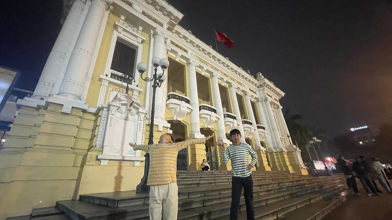 500여 개의 계단을 내려와 버스에 도착한 후 패키지 팀원이 모두 도착할 때를 기다려 20분 늦은 4:50에 하노이로 출발했다. 100km 남짓 거리지만 도로사정과 교통체증에 의해 2:30이 지나서야 하노이로 도착했다. 우리는 저녁도 먹어야 해서 숙소에 내리지 않고 오페라하우스에 내려 저녁 먹을 곳을 찾았다. 오페라하우스를 거쳐 아이스크림 맛집이 있어 인당 2개씩 아이스크림을 먼저 먹었다.