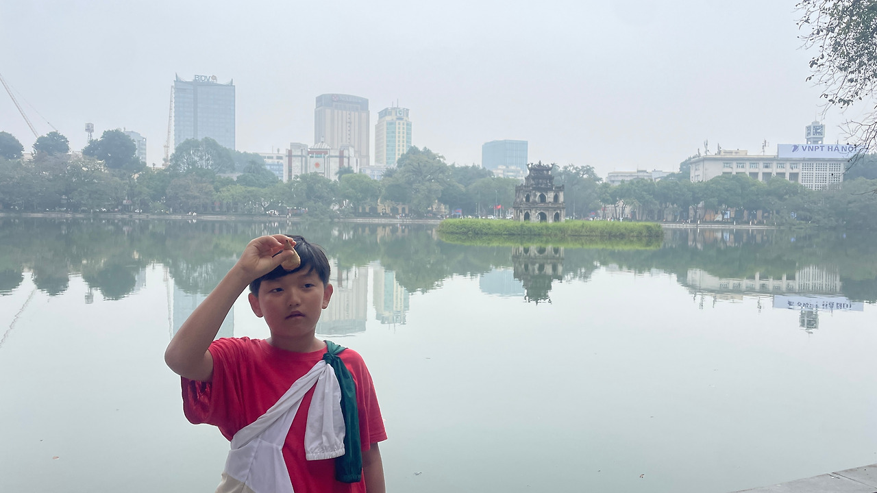 발마사지를 하는 동안 아이들은 유튜브를 하누시간 풀어줘 그들에겐 꿈과 같은 시간을 부여했다. 나는 얼굴 마사지를 받으면서 발 마사지를 같이 했으면 더 좋았을 것이란 생각이 들었지만 이내 맘을 돌리고 편하게 누워 얼굴 마사지에 집중했다. 마친 시간이 17:20인데, 첫째가 호안끼엠 호수에서 발견된 자라 박제가 있는 사원을 가보고 싶어 한다. 하누달 동안의 여행동안 스스로 가보고 싶어 하는 곳이 없었는데 걸어가기엔 2.2km로 시간이 안 될 거 같아 택시를 타고 이동해서 호안끼엠 호수 가운데 위치한 사원에 입장료 50,000동을 내고 입장했다. 본인이 원하는 곳이라 알아서 찾아 잘 다니는 모습이 보기가 좋다.