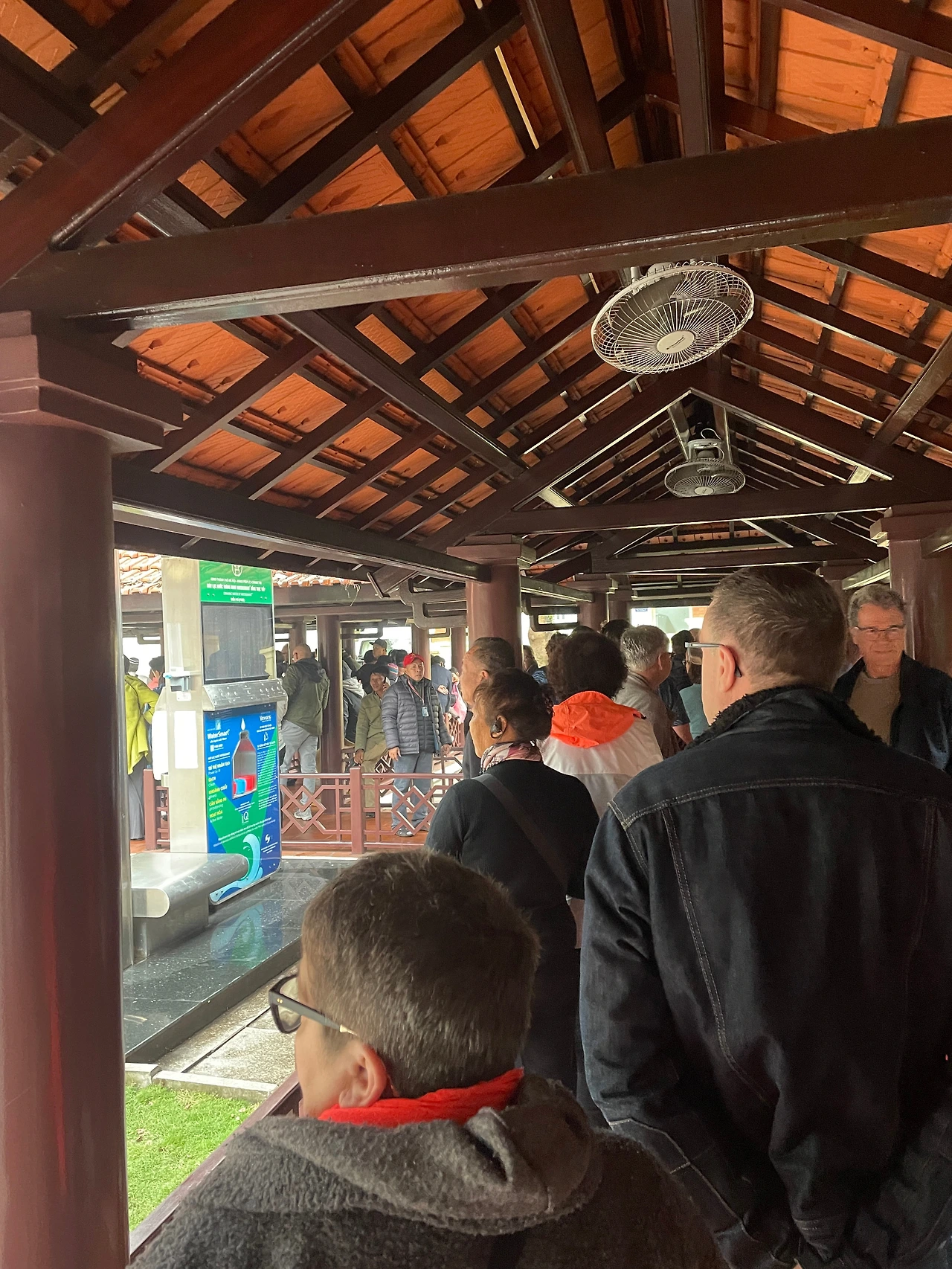 내일은 비행기를 타고 귀국하는 것이 마지막 일정이다 보니 실제 해외에서의 배낭여행은 오늘이 마지막이다. 숙소도 체크아웃해야 하고, 비행기는 다음날 00:20이니 일찍 간다고 해도 하노이 시내에서 19:00에 출발한다고 했을 때 체크아웃 12:00 이후 7시간을 보낼 계획을 세워야 했다. 일단 하노이 까지 왔으니 나의 버킷 리스트의 하나인 사회주의 미라 관람 미션을 위해 아침 일찍 조식도 포기하고 08:00-10:00까지 방문 가능하다는 호찌민 영묘로 향했다. 숙소에서 거리가 2km 이상이라 택시를 불러 07:50에 도착했다. 정확한 입구를 몰라 백인 단체 관광객이 들어가는 곳을 따라 들어가 짐검사를 하고 영묘 앞으로 이동해 입장을 기다렸다. 08:00 입장이라 알고 왔지만, 08:30이 지나도 입장이 이루어지지 않았다. 어리둥절했지만 베트남에 와선 베트남 법을 따르고, 언어를 모르면 묻지도 못하니 그냥 참고 기다리는 수밖에 없다. 열받으면 영어 공부 열심히 해서 묻고 따지고 하자. 다른 관광객들도 조용히 기다림의 대열에서 이탈하지 않는다.