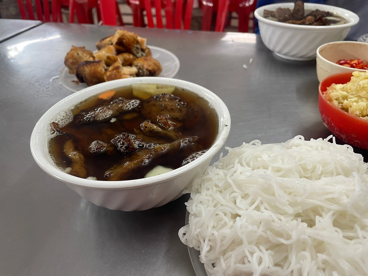 구글 평점을 보고 찾아간 곳이라 사람이 많을까 걱정했지만 아침 장사와 잠심 사이라서 식당은 한가했고, 점심 배달을 준비하는 포장과 고기를 굽는 손갈만이 분주하게 보이고 있었다. 쌀국수는 호불호가 갈리더라도 분짜는 웬만한 아이들도 다 좋아하는 단짠의 맛이라 3 부자가 모두 맛있게 먹었다. 주문할 때 넴(짜조)를 몇 개 시킬까 묻는 말이었는데, 3개를 시키는 바람에 분짜 3개와 넴3개가 푸짐하게 나왔다. 이걸 어째 다 먹을까 하는 기우는 3 부자의 맛난 식사로 사라졌다. 3 부자가 모든 음식을 다 함께 먹어치운 첫끼로 기록할 만했다.