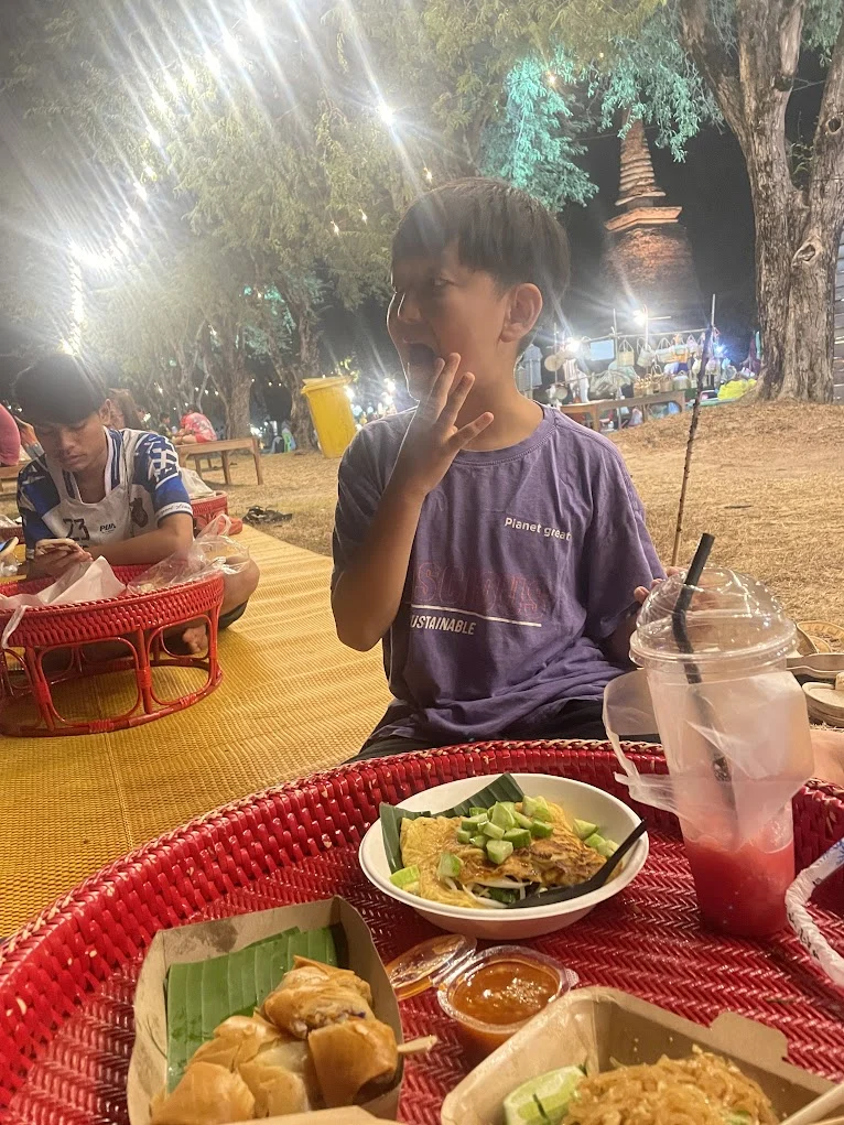 치앙마이에서는 비싼 돈을 주고 갔으나 아이들이 많이 먹지 못해 아쉬웠던, 독일식 뷔페식당이, 수코타이에서는 기념일이라 수코타이 역사공원이 야간개장에 야시장이 열려 역사공원 안에서 먹었던 저녁식사가 특이한 경험으로 남아 있다. 아유타야에서도 주말에만 열리는 야시장에서 먹었던 저렴하면서 다양한 음식이 아직 눈가에 선하다. 방콕에서는 이틀 연속 찾았던 작은 수로 옆에 형성된 노천 식당이 기억에 남는다.