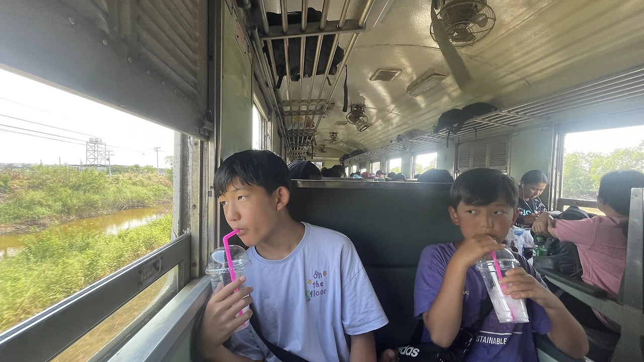 이번 여행에서 기차 탑승은 타이 아유타야에서 방콕으로 가는 3등석 선풍기칸 열차와 루앙프라방에서 방비엥까지 가는 1등석 침대칸 열차였다. 일부러 계획단계에서 다양한 철도의 상황을 경험해 보게 하려는 아빠의 심오한 고민이 이를 가능케 했다.