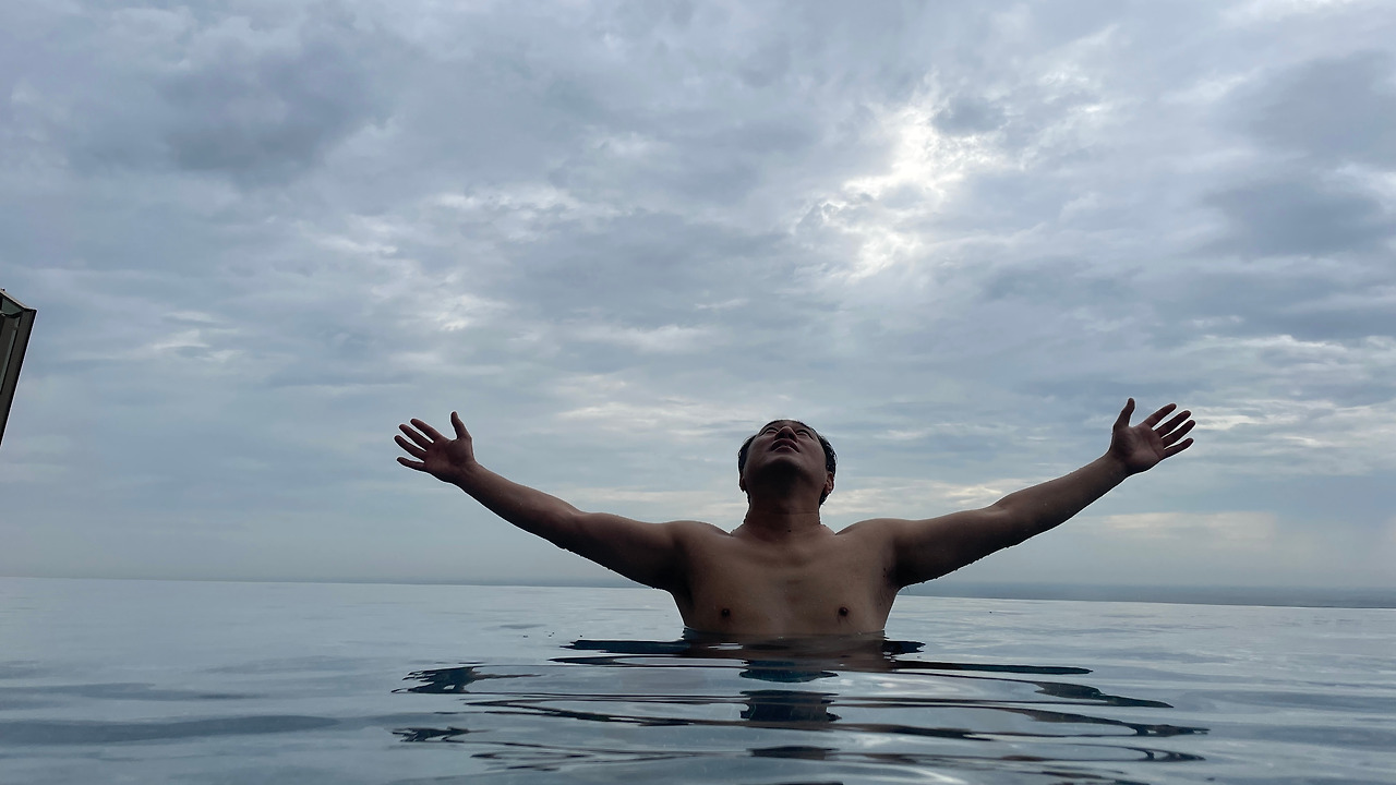 어제의 숙취가 아직 말끔히 해소되지 않은 몸으로 몸을 일으켰다. 친구가 10:40에 차를 보내주기로 해서 늦은 기상으로 할 수 있는 일정이 거의 없었다. 게다가 잠을 설친 친구 A는 좀 더 잠을 청하기로해서 친구 B와 함께 레지던스 꼭대기 층에 위치한 수영장에서 해장 수영을 하기로 하고 수영장을 찾았다. 55층에 위치한 인피니티 풀 형식의 수영장엔 사람 하나 없이 청소하는 사람 셋과 장부에 사용자를 기록하는 사람 4명이 전부였다. 마치 수영장을 전세라도 낸 듯 해장을 위해 어제의 알코올 기운으로 뜨끈한 몸을 찬 수영장 물에 담갔다.
