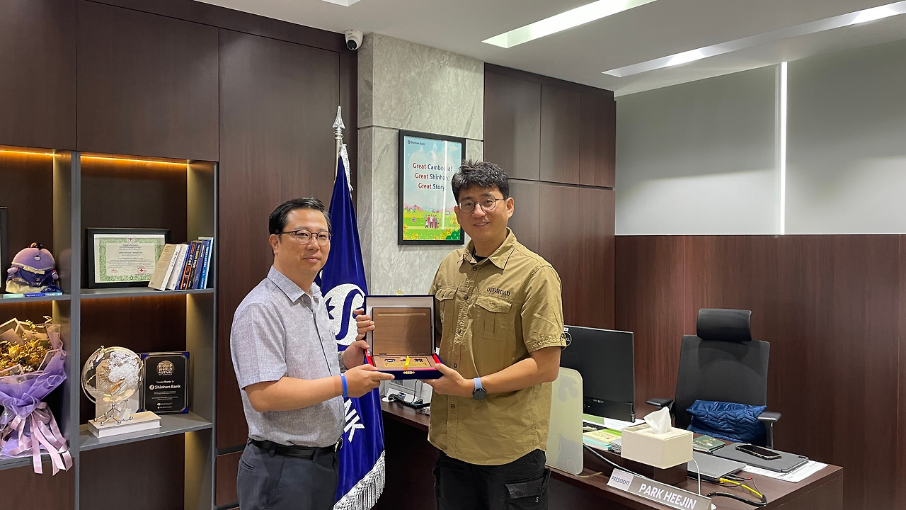 수영을 하고 친구에게 감사패를 증정하기 위해 친구가 일하는 지점으로 향했다. 10여분을 달려 친구의 사무실에 도착했거, 차 한잔 마시며 어제의 행복했던 시간을 회상한 후 간단하게 감사패 증정식을 가졌다.