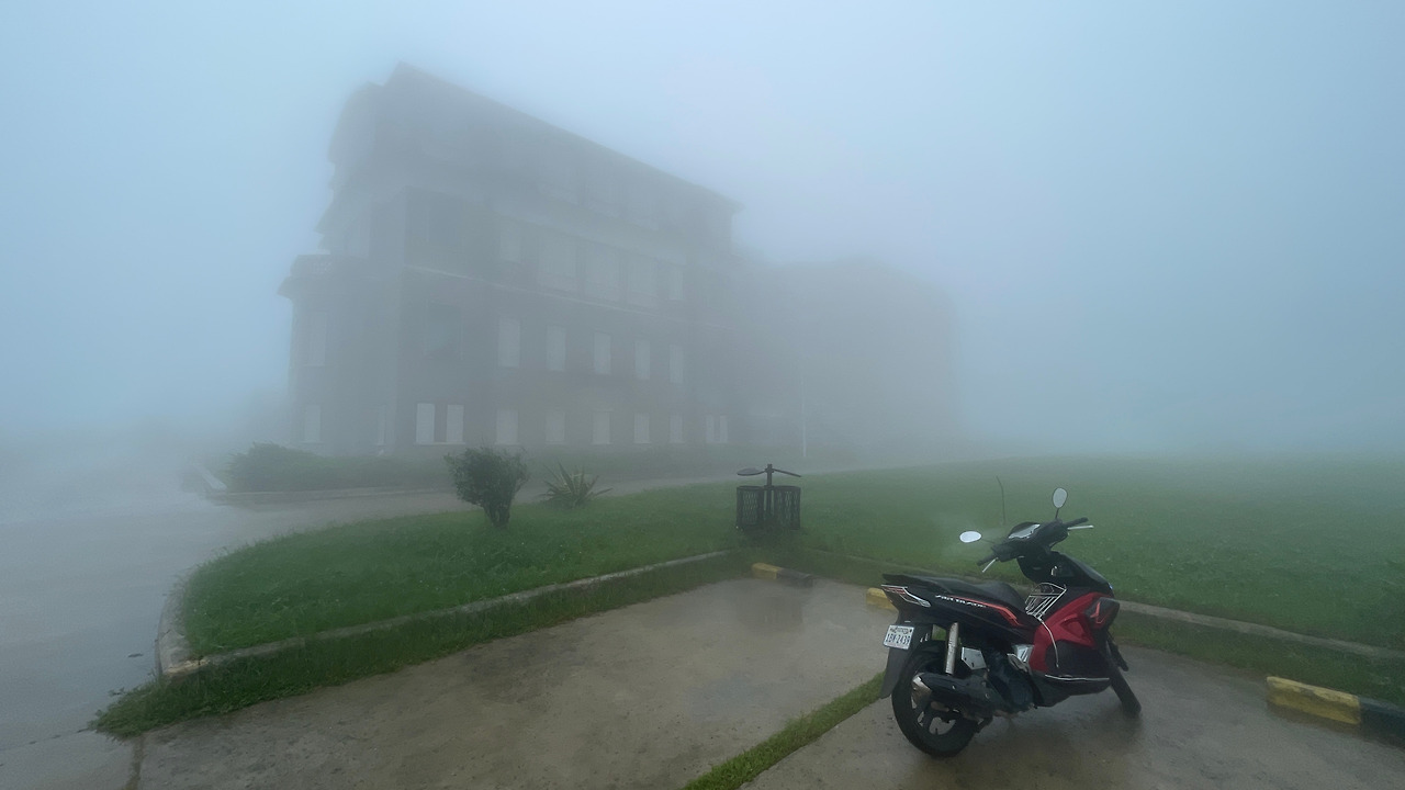 중턱에서부터 비가 흩날리기 시작하더니 안개와 비가 번갈아가며 라이딩을 방해했다. 34km 정도의 라이딩 거리를 달리다 쉬다를 반복하며 올랐다. 안개가 너무 짙어 앞이 보이지 않는 경우도 있었다. 나야 라이딩에 최적화되어 있지만, 초보 둘이 뒤를 따르고 있으니 신경이 많이 쓰였지만 무사하게 도착했다. ‘알 포인트’의 마지막 배경인 프랑스 식민지 시절 휴양시설은 현재 호텔로 사용 중이지만 찾는 이는 거의 없다고 한다. 안개로 인해 가까이 가야만 건물의 형태가 드러나는 날씨라 가까이에서 사진 한잔을 남기고 이선균 배우를 떠올리며 잠시 생각에 잠겼다. 6년 전 겨울에 올 때는 단순히 ‘알 포인트’ 촬영지를 보기 위해 올랐지만, 6년이 지난 지금은 동갑내기 배우로 안타까운 죽음을 맞이한 이선균 배우를 추모하기 위해 올랐다. 6년의 시간을 되돌릴 수 있다면~