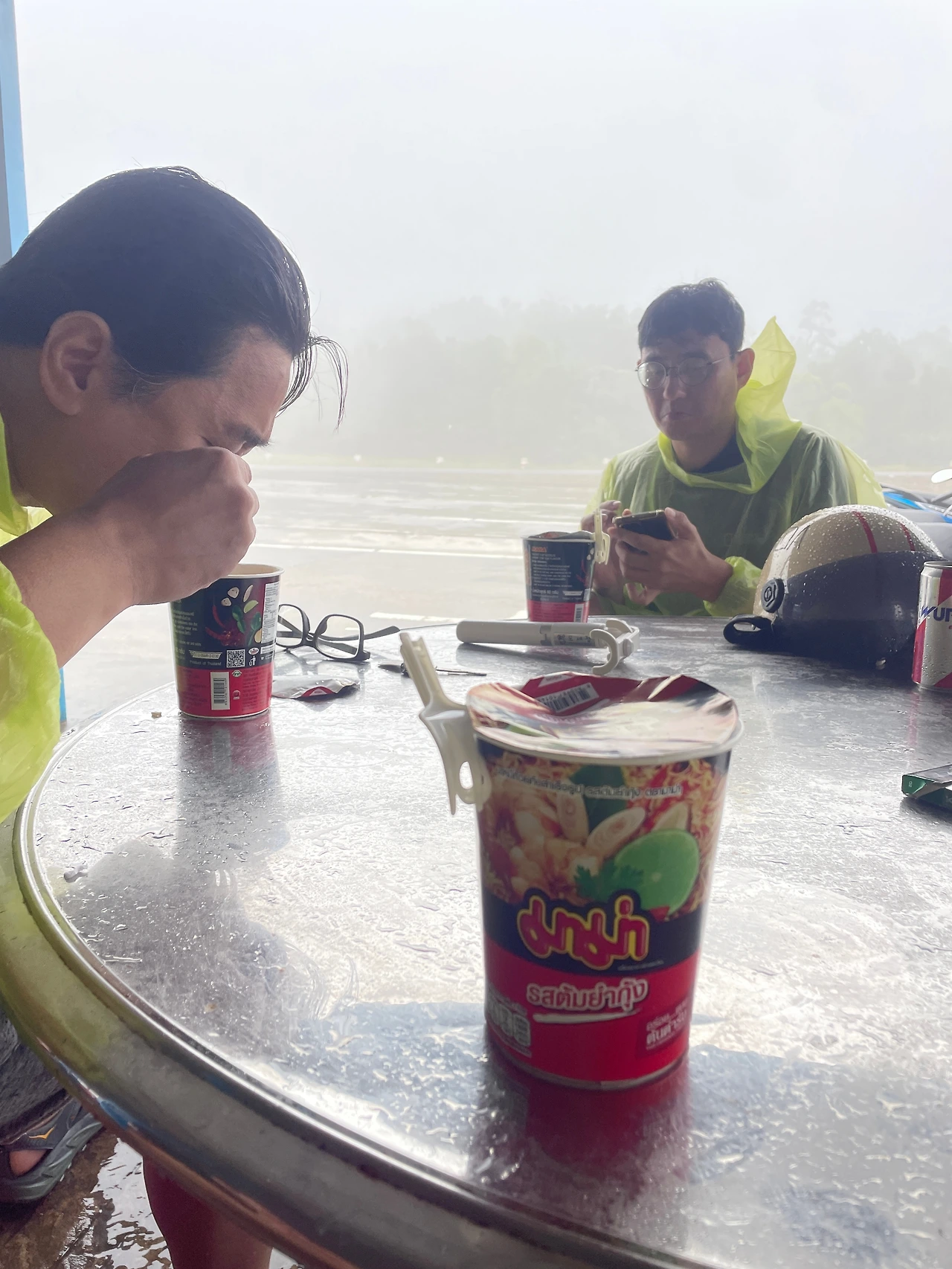 비옷을 0.5달러를 주고 사 입은 것이 그래도 추위를 어느 정도 막아줬지만, 시간이 지날수록 추위는 심해졌고 안개에 싸인 정상 부근엔 식당은 고사고 산을 오르는 현지인 오토바이를 제외하고는 아무도 찾을 수 없었다. 다행히 라오할머니 상에 바칠 물건을 파는 작은 가게에서 컵라면을 사 먹을 수 있어 짧게나마 몸을 녹일 수 있었다.