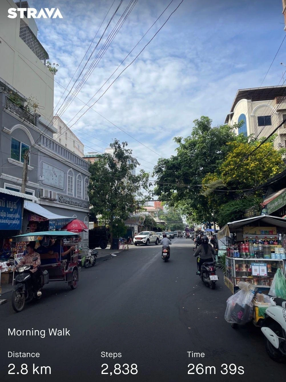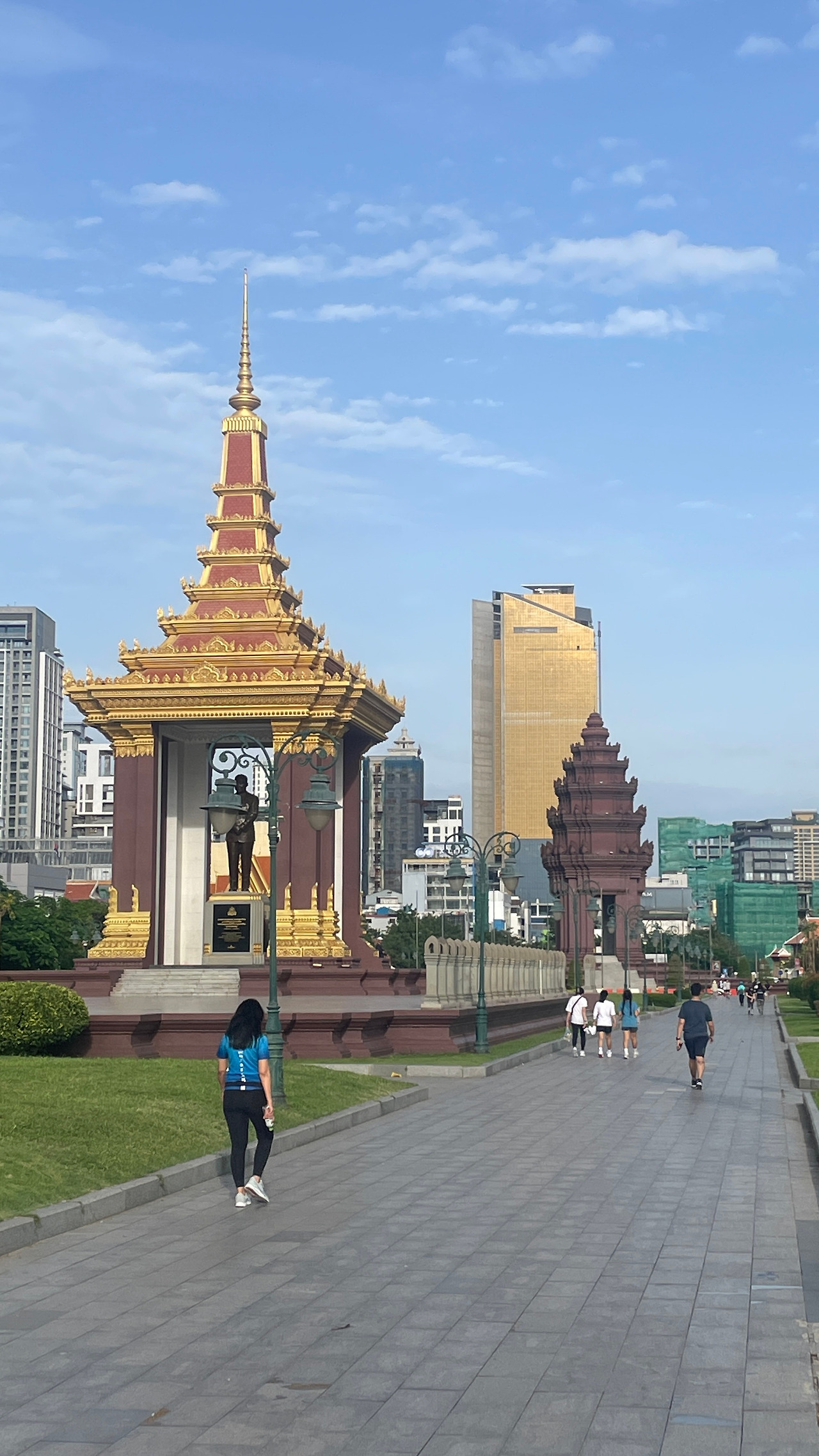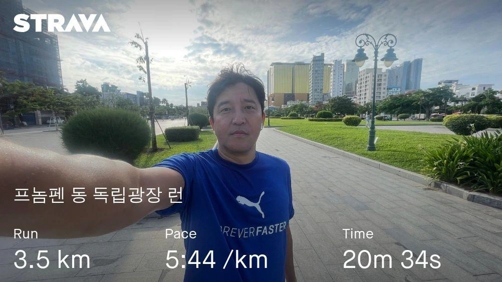 마지막 취침을 카지노 호텔에서 취하고, 아침 일찍 러닝을 위해서 일어났다. 숙소 앞에 독립 기념탑을 중심으로 시아누크 왕의 동상까지 러닝을 위한 최적의 조건을 갖추고 있었다. 게다가 아침엔 구름이 끼어 태양도 피할 수 있었다.