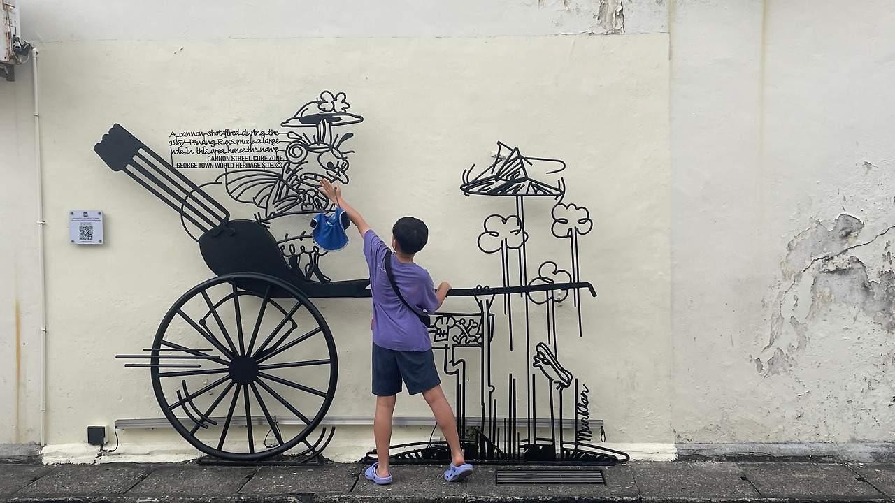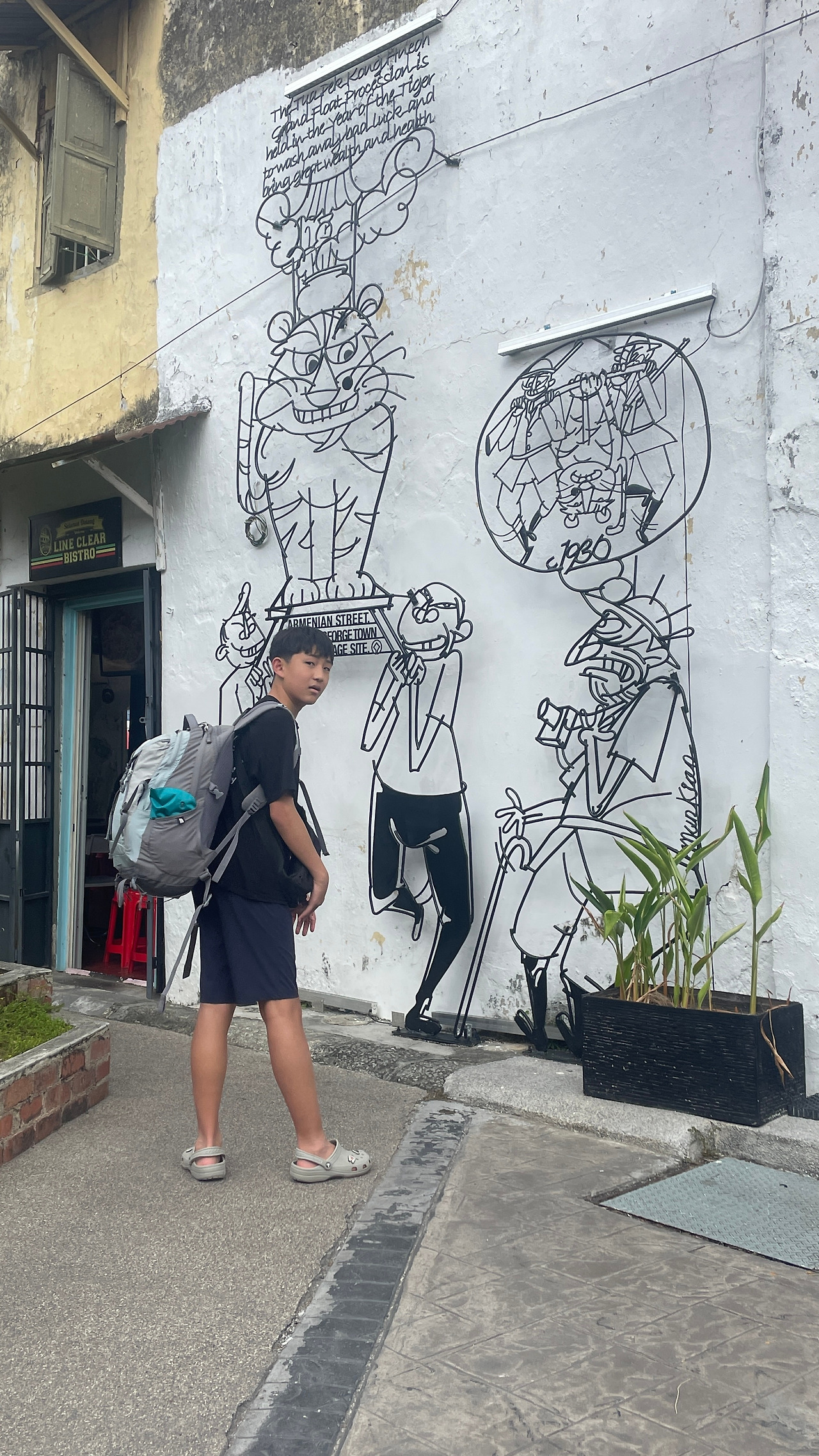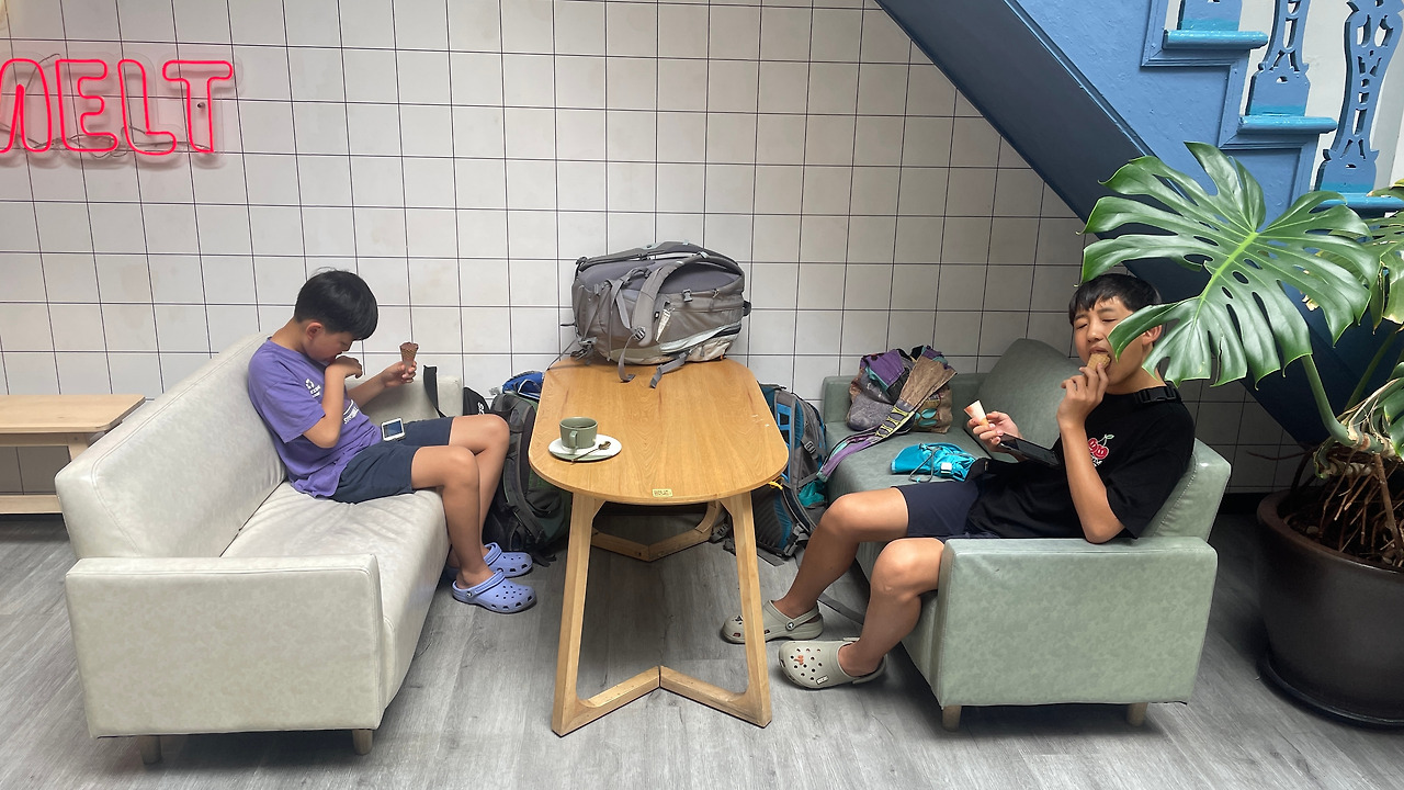 체크인은 15:00시. 점심을 먹고 식당 와이파이를 연결해서 12:30까지 버텼지만 계속 있을 순 없다. 아이들을 설득하여 둘째 배낭을 내가 메기로 하고 벽화 거리 여행을 하기로 했다. 벽화 거리는 그리 크지 않지만 올드타운 속에 위치하여 골목골목 여행지가 연결되어 있어 여러 지역으로 이동하기 편리한 곳이었다. 하지만 배낭을 메고 계속 이동하기엔 효율적이지 않아 휴식 차원에서 디저트로 아이스크림과 커피를 한 잔 하고, 리틀인디아 쪽만 둘러보고 숙소에 체크인을 하기로 했다.