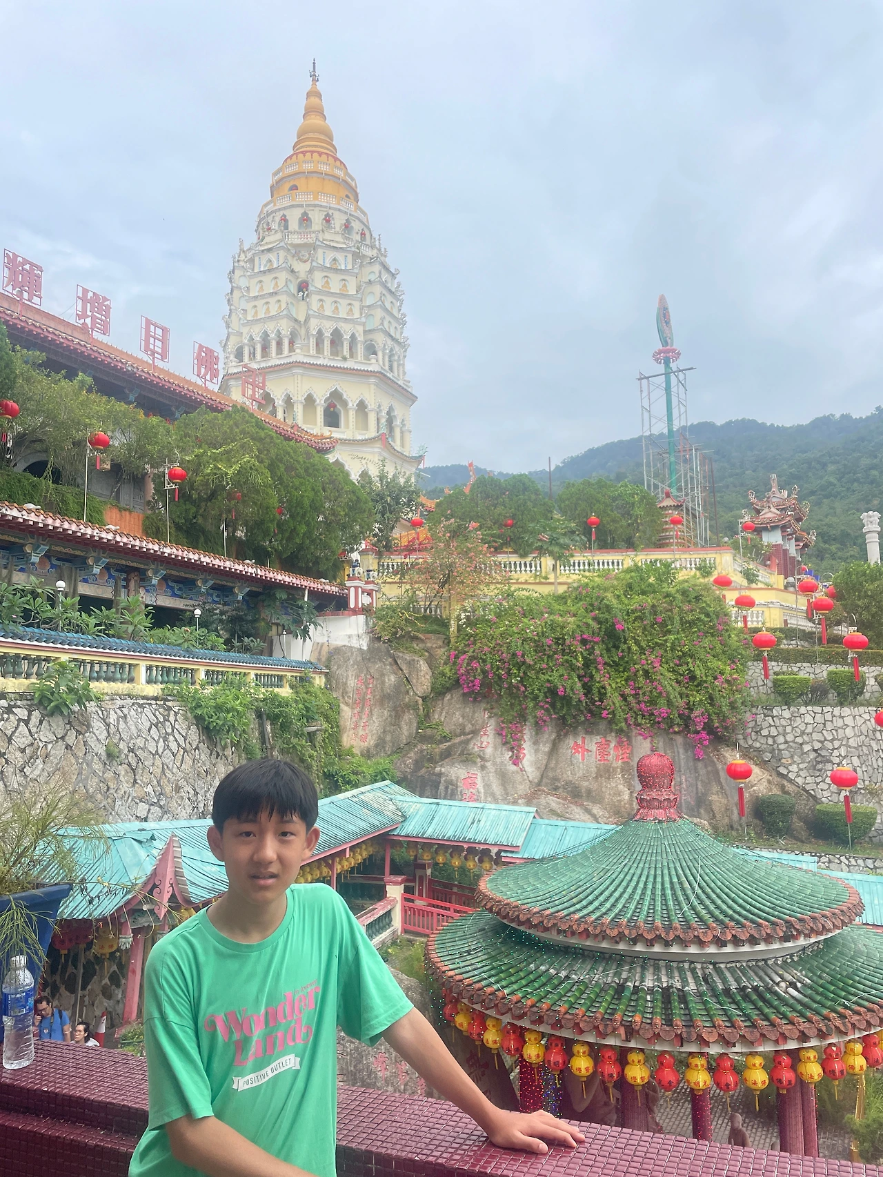 올라가는 길에 나이 지긋한 백인들이 많이 있던데, 생각해 보니 페낭엔 크루즈가 정박하는 도시로 오늘이 페낭에 크루즈가 정박한 날이었다. 극락사 쪽으로는 버스 한 팀이 왔는지 30-40명의 단체 관광을 하는 외국인들이 보였다. 거리가 얼마 되지 않았지만, 아침에 습한 기운에 금세 등이 다 젖을 만큼 더웠다. 한 5분을 걷자 둘째가 못 가겠다며 버팅기기 시작했다. 두 번째 낭패의 시작이었다. 첫째와 먼저 올라가 기다렸으나 따라오지 않고 벤치에 앉아서 징징거리기만 했다. 하는 수 없이 형이랑 올라갔다 올 테니 30분 동안 기다리라고 하고 첫째랑 극락사를 올랐다.