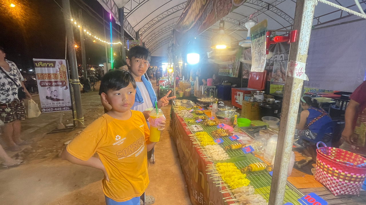 저녁을 먹고 도로변에 있는 좀 더 현대화된 야시장에서 마지막 먹거리를 사서 숙소로 들어가기로 하였다. 망고 주스와 통오징어구이, 꼬치류를 사서 숙소로 돌아왔다.