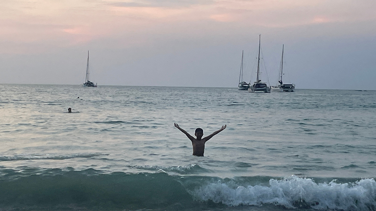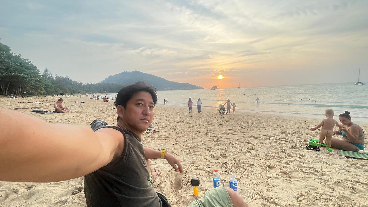 점심을 먹고 계산까지 토스 앱으로 스캔을 통해 결제하고 택시를 부르기 위해 다양한 택시 앱을 실행시켰는데, 가장 싼 곳과 가장 비싼 곳의 차이가 만원 이상 나서 가장 싼 앱으로 택시를 부르고 40분을 달려 나이양 비치 쪽 숙소에 도착했다. 큰길에서 언덕 쪽으로 1km 정도 떨어져 있어 오토바이가 없으면 이동이 힘들다 생각해 숙소에 렌트를 문의했지만 모든 오토바이가 렌트되어 오토바이가 없었다. 직접 해안가로 가서 빌려볼 생각으로 아이들을 데리고 2.5km를 걸어 해변 주변을 찾아보았지만 들어간 모든 렌털 샵에서도 남아있는 오토바이가 없었다. 시작부터 현재까지 뭔가 되는 게 없다. 푸껫은 나랑 안 맞는 모양이다. 나온 김에 해변으로 이동했는데, 사람들이 많이 있었다. 물이 얕고 잔잔하고 산호초 같은 것이 없어 아이들에게 반바지만 입고 들어가 놀게 하고 해변애서 사람 구경을 했는데 그렇게 2시간이 훌쩍 지났다.