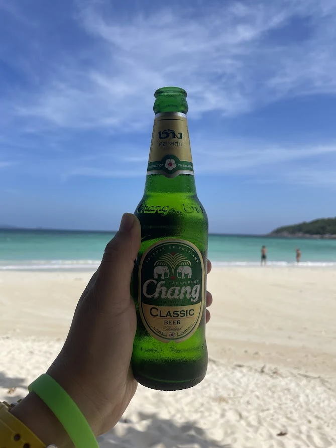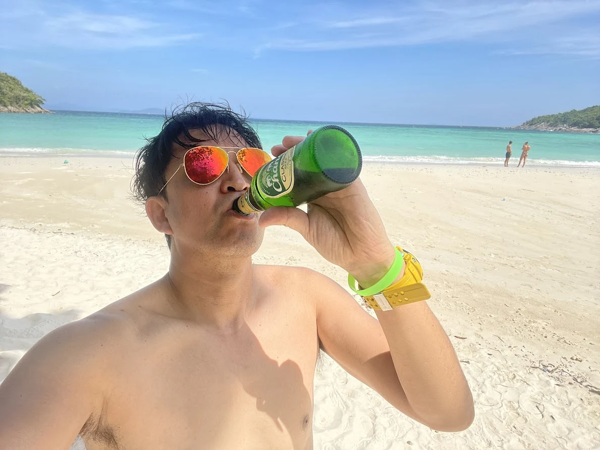 스노클링을 오래간만에 하니 애도 나도 힘들어 섬으로 내려 점심을 먹고 쉬기로 하였다. 아이들은 둘이 같이 놀면서 시간을 보내고, 나는 어제의 스트레스를 풀기 위해 병맥주를 하나 시켰다. 아~ 이 얼마만의 창 비어인가?