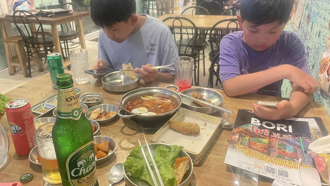두 번째 비치는 내가 푸껫 오기 전부터 꼭 가보고 싶었던 해변이었다. 오토바이가 없으면 택시를 타고 오고 가는 것이 너무 복잡하고 비싸서 오토바이를 고친 김에 꼭 오고 싶어서 오후 일정으로 포함시켰다. 결과는 대만족. 푸껫에서 가장 맘에 드는 장소였다. 사람이 많지도 적지도 않고 두 곳의 작은 바에서 음식과 음료도 팔고 있었다. 무엇보다 물도 깨끗하고 수심도 완만히 깊어져서 아이들이 놀기에도 적당했다. 해변엔 가족단위 외국인과 연인들이 주를 이뤘다. 이곳에서 일몰까지 보고 오고 싶었지만, 첫째가 바위에 찍혀 발바닥을 다치고 내일 일찍 공항으로 이동해야 해서 17:00에 짐을 싸고 숙소 주변에 있는 식당으로 향했다. 오토바이가 있으니 역시 기동력이 뛰어나 시간과 비용을 줄일 수 있었다. 푸껫에서 마지막 저녁은 야시장 옆 현지 식당으로 정하고 역시나 본인이 먹을 것을 정하고 필요한 음식들을 구매하여 마지막 식사를 즐겼다.