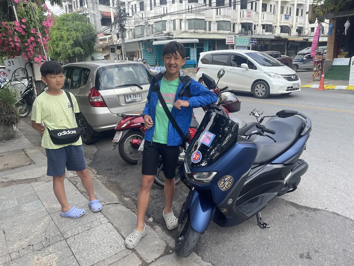 택시를 타고 숙소에 11:00에 도착했지만, 체크인 시간이 되지 않아 가방을 맡기고 오토바이 렌트를 부탁했다. 150cc급 스쿠터를 부탁했으나 대여점에서 125cc를 가지고 와서 150cc급으로 대여점에 직접 가서 바꿔서 왔다. 운전의 편의성을 위해 한국에서 타던 nmax로 대여하였다. 아이들 둘을 태우고 오늘 가야 할 곳은 대략 50km로 치앙라이 시내에서 반경 20km 이내에 위치한 백색사원, 청색사원, 후어이쁠라깡사원, 야시장으로 정했다. 일명 흑색사원도 있지만 전시물들을 이해하기가 어려워 아이들이 가 볼만한 곳이 아니라 판단해서 건너뛰고 백색, 청색사원 두 곳만 가기로 했다.