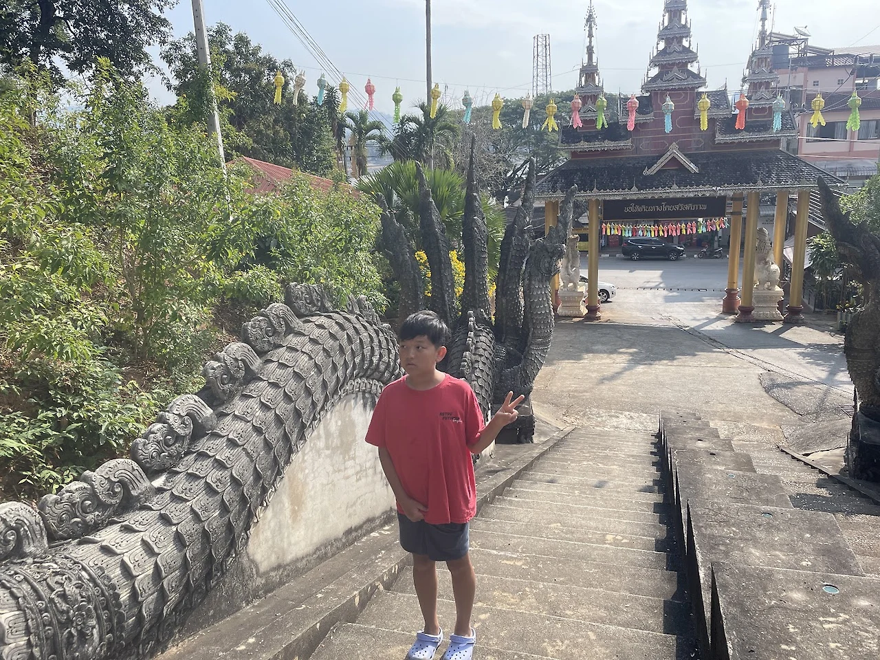 오늘은 이틀 전 예매해 놓은 버스를 타고 치앙마이로 넘어가는 날이다. 빌려둔 오토바이는 11:00 반납, 체크 아웃은 12:00, 치앙마이행 버스 시간은 12:30이다. 혼자만의 여행이면 짐을 싸고 출발하는 시간까지 넉넉하겠지만, 두 아들은 잘 따라 주다가도 한 번씩 폭주를 하기에 신경 쓸 일이 이만저만이 아니다. 어제 대략 짜놓은 일정은 일단 혼자 일출을 보고(아이들은 일출 보다 잠을 좋아한다), 숙소에 와서 프라 깨우 사원을 오토바이로 갔다 와서 짐을 싸 치앙마이로 이동하는 일정이었다. 알람을 맞춰 해가 뜨는 6:58분에 도착지역에 도착할 수 있게 일어나 오토바이 키를 챙겼다. 그리고 15분을 달려 산속에 있는 사원에 홀로 도착했다. 사원 이름도 어렵다. Wat Phrathat Doi Khao Kwai