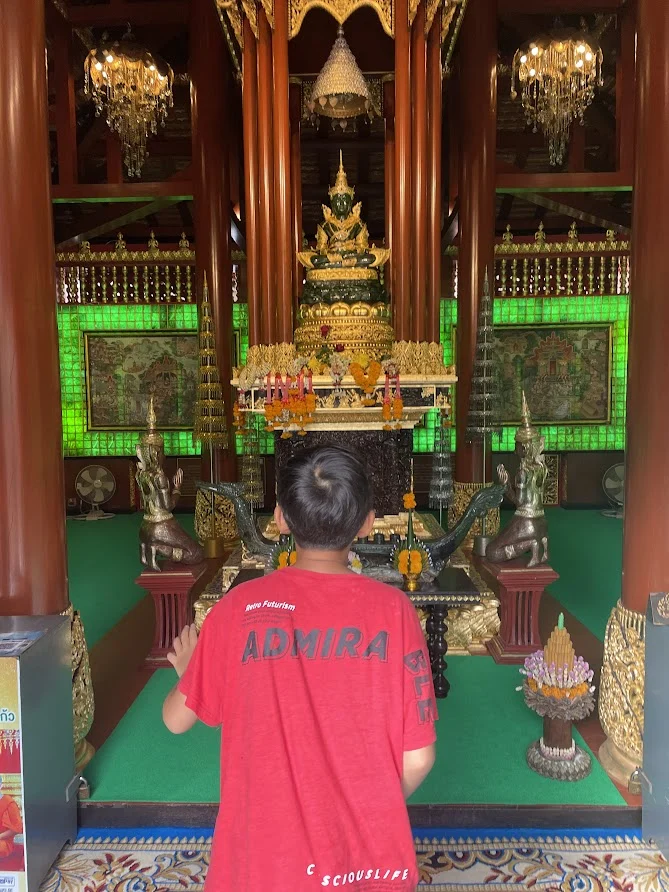 '왓 빠이아(대나무 숲 사원)'라는 이름을 가진 곳이었지만, 1434년 번개를 맞은 사원 체디에서 '에메랄드 불상'이 발견되어 이름이 '왓 프라 깨우'로 변경되었고, 이후 왕실 사원으로 승격되었다. 에메랄드 불상은 람빵과 치앙마이, 라오스의 루앙프라방과 비엔티안을 거쳐 1978년 '방콕의 왓 프라 깨우'에 봉안되었으며, 현재 이곳에 있는 에메랄드 불상은 캐나다에서 수입한 옥으로 만든 모조품이다. 출처: Triple
