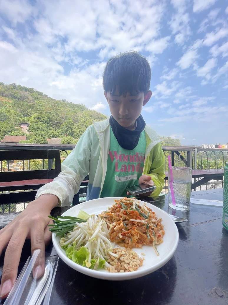 사원을 관람하고 2km 떨어진 곳에 위치한 아편박물관을 관람하려 했지만 월요일은 휴관이었다. 투어 코스에 포함되어 있었지만, 아쉬움을 뒤로하고 태국 최북단 미얀마와 국경을 접하고 있는 매싸이로 30km를 내리 달렸다. 가는 길이 고속국도가 아니고 마을을 끼고 있어서 좀 더 정겨운 태국의 마을 풍경을 볼 수 있었다. 40분을 달려 도착한 태국과 미얀마의 국경은 활발하게 육로 무역이 이루어지는지 국경 검문소에 차들이 엄청 많이 정차해 있었다. 우리는 통과하지 못해서 왼쪽 샛길로 빠져 산 위에 있는 단파삭 전망대로 향하기로 하고 중간에 식당에 들러 점심을 먹기로 했다. 우연히 들른 식당에 우리가 첫 손님이었고 아름다운 풍경과 식당 인테리어로 절반을 지나고 있는 여행에서 모두가 만족한 최고의 식당이었다.