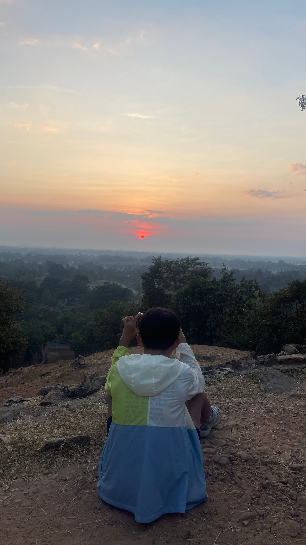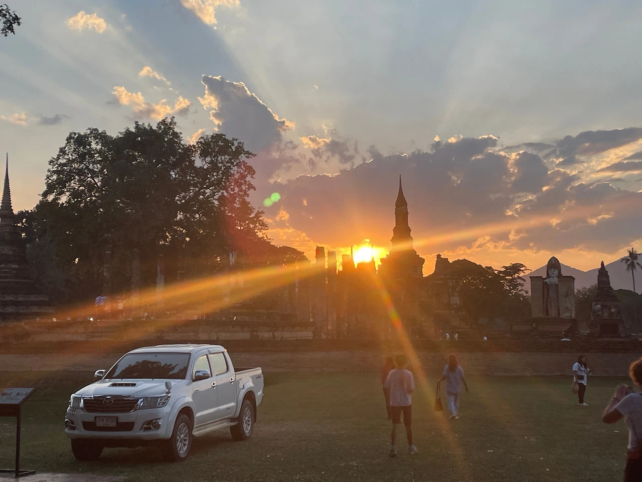 오늘은 수코타이 2일 차다. 한 일주일 일정으로 천천히 감상하며 보내야 할 일정을 36시간 정도만에 마무리해야 되니 바쁘긴 하다. 어제 계획에 따라 일출을 보기 위해 왓 싸판 힌으로 향하기로 하고 아이들을 깨웠다. 둘째는 자고 싶다고 해서 혼자 남겨두고 첫째를 태워 사원으로 향했다. 새벽이라 조용한 도로를 달려 10여분 뒤 사원에 도착했다. 100m 정도 높이의 박은 언덕 위에 지어진 사원을 걸어서 올라가야 한다. 역사공원 외곽지역 주요 사원은 따로 100밧의 입장료를 통합하여 징수하는데, 새벽 일출 시간엔 표를 받는 사람이 없어 무료로 입장할 수 있다. 정상에 도착하니 툭툭을 타고 온 외국인 가족과 커플이 있었다. 일출을 감상하며 아들에게 태어나서 일출을 몇 번 봤냐고 하니 처음이란다. 일출을 보러 간 적이 한 번도 없음을 자각했다.