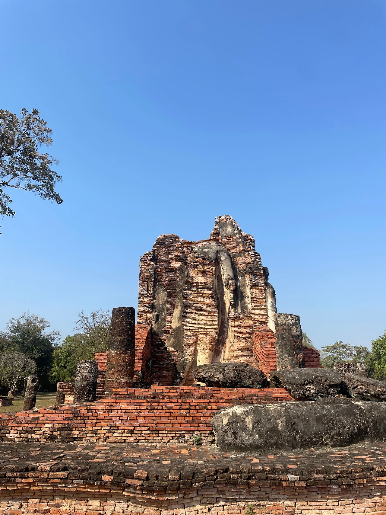 왓 프라파이 루앙 유적은 넓은 면적의 유적이었지만 많이 파괴된 모습을 그대로 유지하고 있었다. 왓 씨춤에서 발권한 표로 입장이 가능하다. 오토바이 출입은 따로 20밧, 자전거 출입은 10밧을 내야 하고 9세 이하는 무료다. 둘째는 만으로 9세여서 무료로 들어올 수 있었다. 이곳은 그나마 넓은 사원에 그늘이 없어 오후에 오면 더위로 인해 감상이 힘들 듯하니 오전에 둘러보는 것을 추천한다. 앙코르 와트가 12세기 건설된 건축물들이 많은데, 수코타이가 13세기부터 융성했으니 캄보디아의 앙코르 와트의 영향을 받았다고 할 수 있겠다.