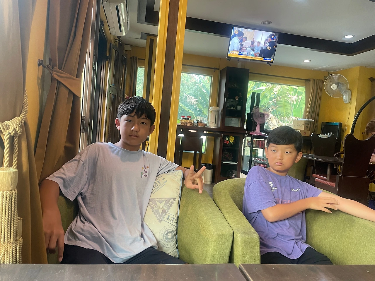 수코타이에서 출발한 버스는 방콕이 최종 목적지였다. 우리는 안내하는 분에게 아유타야를 간다고 얘기를 하고 중간에 식당에 들러 30밧짜리 국수도 먹으며, 아유타야로 향했다. 6시간 정도면 아유타야에 도착하니 체크인 후 오후 시간을 여유롭게 오토바이를 빌려 타고 돌아볼 예정이었다. 구글 지도를 보내 아유타야 옆을 지나고 있었다. 버스 정류장이 어딘지 몰라 알아서 가겠지 하는 순간 버스는 아유타야 옆 도로로 계속 남쪽으로 이동하며 방콕으로 내달리고 있었다. 뭔가 잘 못됐음을 감지하고 안내하는 분에게 우리는 아유타야에 내리는데 왜 지나가냐고 따져 물었다. 대부분이 방콕으로 가는 사람들이라 깜빡했는지 우리를 고속도로 육교가 있는 곳에 내려주며 연신 미안하다고 했다. 역시, 배낭여행의 묘미는 이런 생각지도 못한 상황에서 온다고 억지로 생각하며 내려진 가방을 둘러매고 육교를 건너 반대편으로 향했다. 혼자 여행이었으면 짜증도 내고 할 텐데 아이들과 여행은 나의 짜증이 그대로 전달되기에 버스에게 같이 욕 한 번 날리고 잊자고 하니 흔쾌히 웃으며 포즈를 취해줬다. 아빠가 돼서 참 좋은 거 가르친다는 사람도 있겠지만, 부자유친(父子有親) 아닌가!