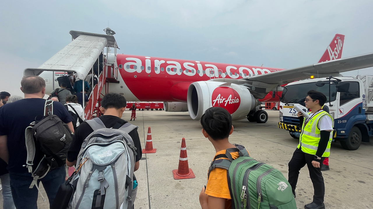 원래 출발 시가뉴보다 30분이 연착되었지만, 에어아시아는 문자도 보내주고 나름 노력을 하는 항공사처럼 인식되었다. 날씨가 흐려 난기류가 많이 발생한 듯 기체가 많이 흔들리는 경우가 있었지만 예상 시각에 비행기는 맑은 날씨의 라오스 루앙프라방에 무사히 도착했다.