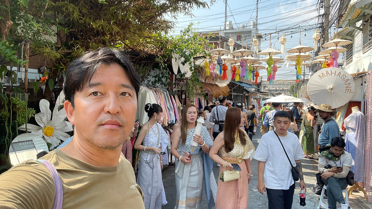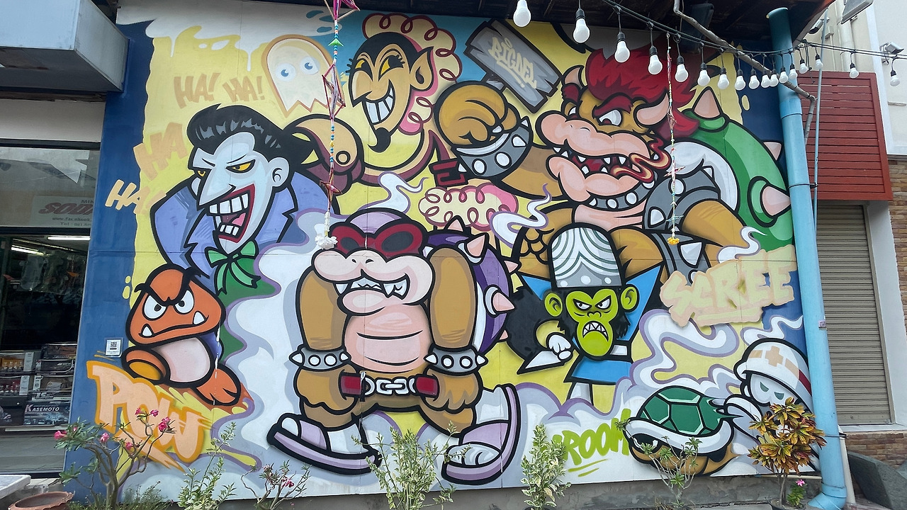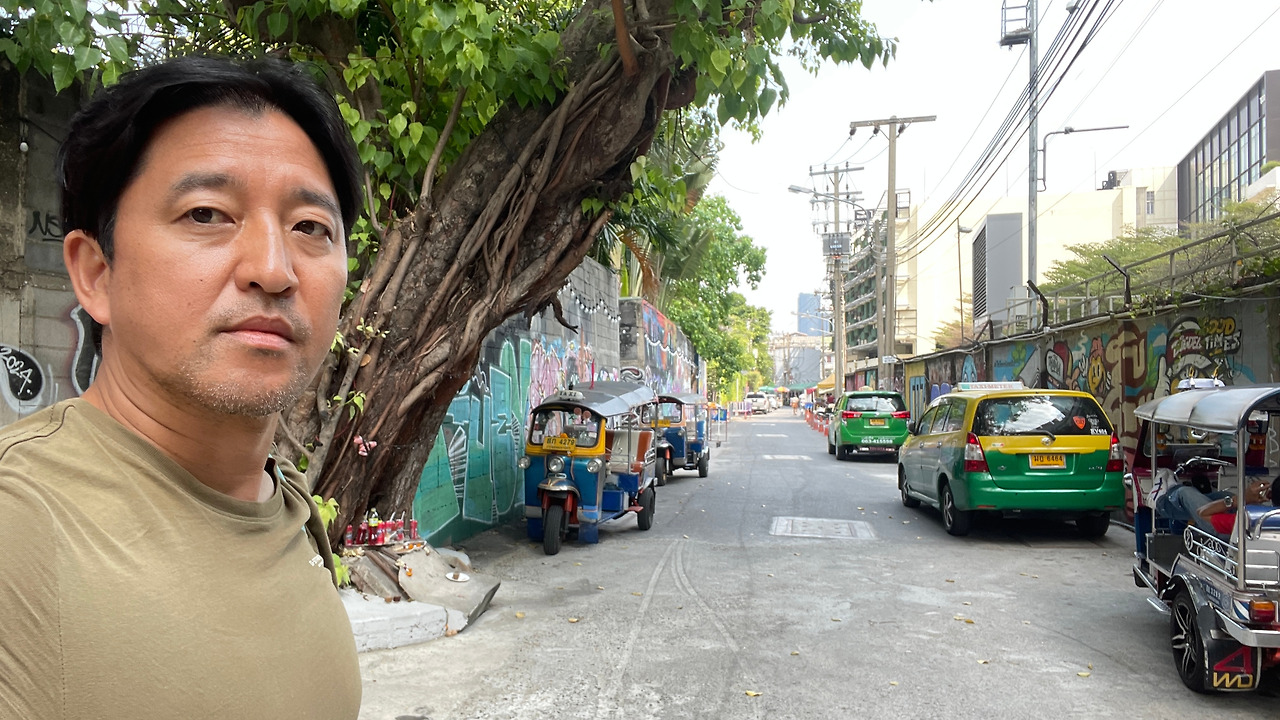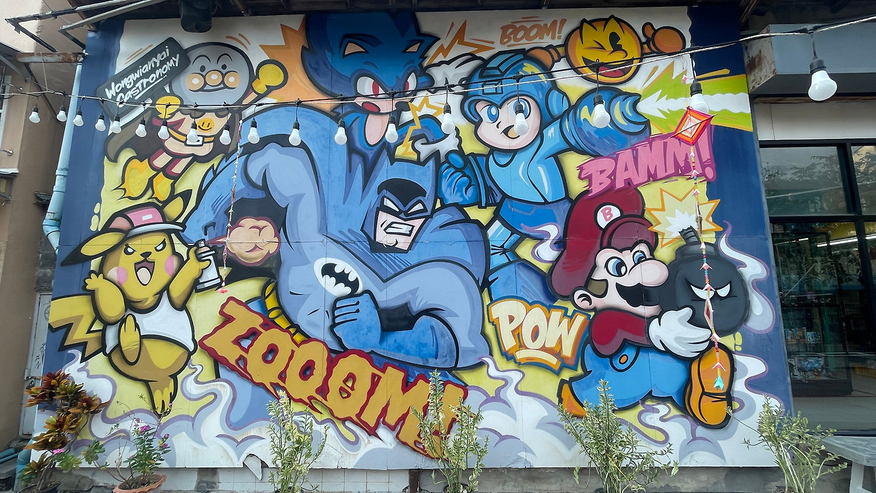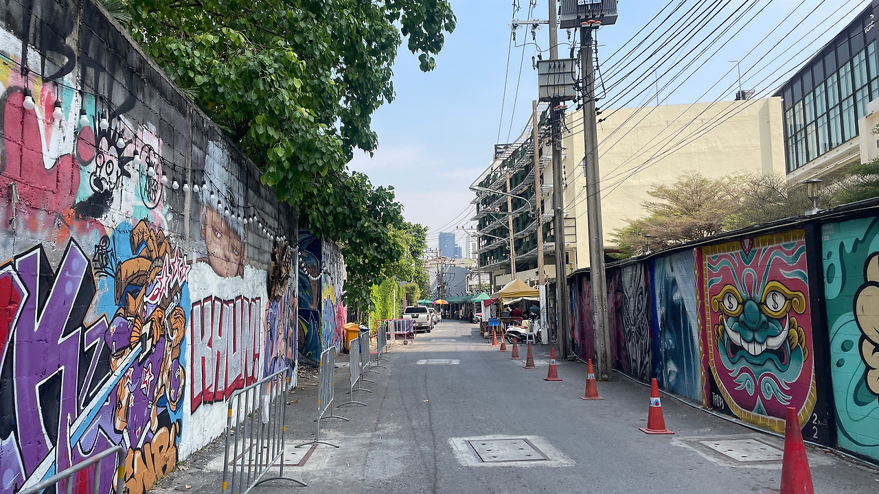더위에 지쳐 이동하는 중간에 실내 에어컨이 설치된 카페에 들어가 팟타이와 음료를 시켜 휴식 시간을 가졌다. 음료 단가가 많이 높았다. 길거리에서 사서 마시면 4-50밧이면 충분했지만, 에어컨이 설치된 실내 카페는 보통 100밧 정도의 가격이었다. 비싼 카페지만 더운 방콕 뚜벅이 여행에는 꼭 필요하니 그 정도의 지출은 감수해야 한다. 카페를 나와 워킹스트리트의 벽화를 마지막으로 숙소에 도착했다.