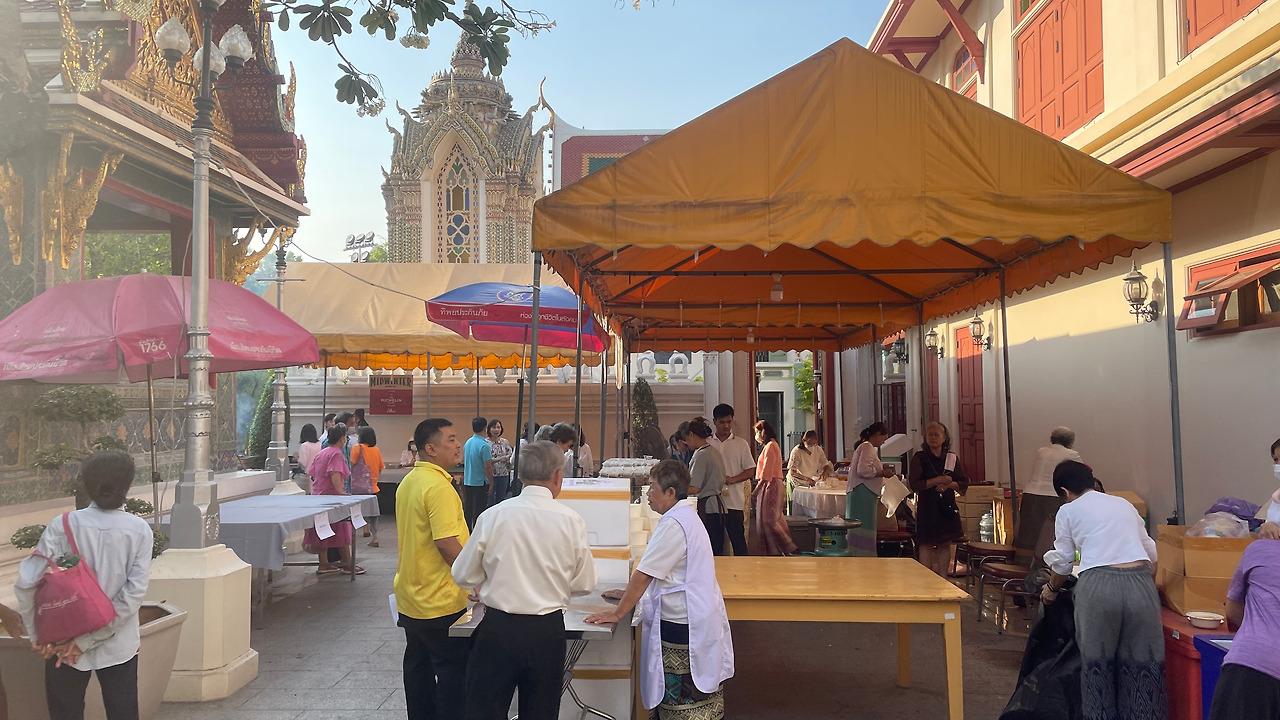 왓 아룬 사원은 배를 타기보다 육지 쪽으로 많이 찾아오는 거 같았다. 사원 내부를 둘러보고 점심시간이 되어 밖으로 나가서 반대편 입구에 있는 현지 식당에서 이른 점심을 먹었다. 사원을 입장할 때, 손등에 도장을 찍어주니 밖으로 나갔다가 다시 들오는 것이 가능하였고 선착장에 도착해서 배를 탈 수 있었다. 어느 선착장에서 오는 배를 타야 하는지 헷갈렸지만, 다행히 문제없이 배를 타고 다음 장소로 이동할 수 있었다.