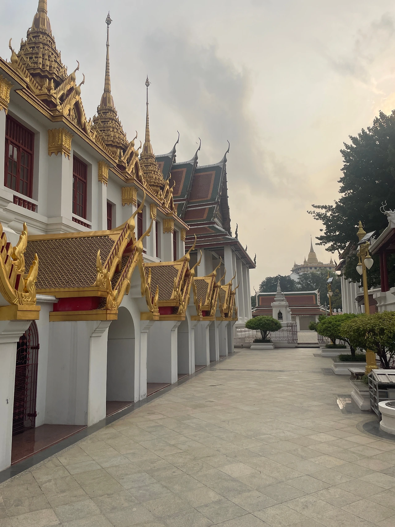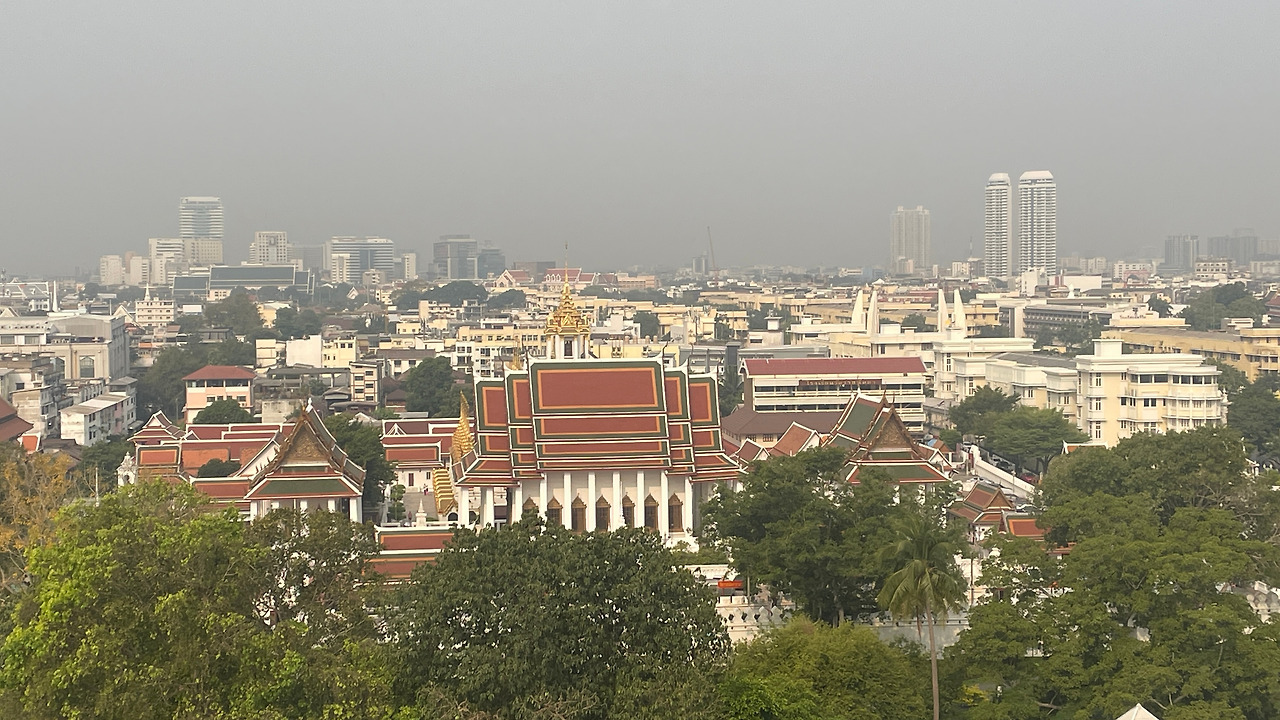 1월 10일 푸껫으로 입국을 했으니 정확히 2주 동안 푸깻-치앙라이-치앙마이-수코타이-아유타야-방콕을 거쳐 태국을 남북으로 가로질러 여행을 했다. 혼자 여행이면 이렇게 번갯불에 콩 구워 먹듯 일정을 짜지 않았을 것이다. 핑계를 대자면 아이들의 뛰어난 체력회복 능력과 한 장소에 대한 빠른 지루함이 그 이유라 하겠다. 다음 목적지는 라오스의 루앙프라방이다. 비행시간은 1:20으로 짧지만, 나름 국제 이동이고 방콕의 교통체증을 생각하면 시간 계획울 꼼꼼히 세워야 했다. 일단 오전 2시간 일정을 위해 인근 사원을 둘러보기로 했다. 걸어서 5분 거리에 있는 이름도 어려운 ‘왓 라차낫다람 워라위한(로하 쁘라삿)을 방문했다. 08:30 개방시간에 맞춰 갔는데 따로 입장료를 받지 않았다. 이후엔 높은 사원 꼭대기에서 나름의 전망을 확보해 주는 ‘푸카오텅(왓싸껫)’을 들렀다. 요즘 웬만한 사원들은 입장료가 100밧이다. 사원은 굳이 여러 곳을 방문할 필요는 없게 느껴졌다. 아이들과 배낭여행에서 사원은 핵심적인 곳만 둘러보는 것이 낫다. 이쯤 되면 이 사원이 저 사원 같고 별 감흥을 느끼지 못하는 지경에 이르기 때문이다.