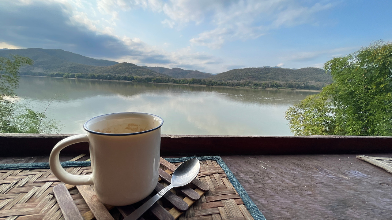 사진을 찍고 세 번째 폭포까지 올라간 뒤 꽝시 폭포를 떠났다. 5시까지 운영이라 사람들이 한꺼번에 빠지는 복잡함을 피해 3:40쯤 숙소로 향했다. 숙소 방향으로 올 때 보았던, 물소 우유 아이스크림 가게에서 아이스크림을 사달라고 해서 사주고, 그곳에서 2km 정도 떨어진 메콩강 뷰가 아름다운 강변 카페에서 에스프레소를 한 잔 마셨다. 이곳에서 숙소까지 21km 떨어져 있어 시간을 지체하지 않고 강변을 잠시 감상하다 숙소로 달렸다.