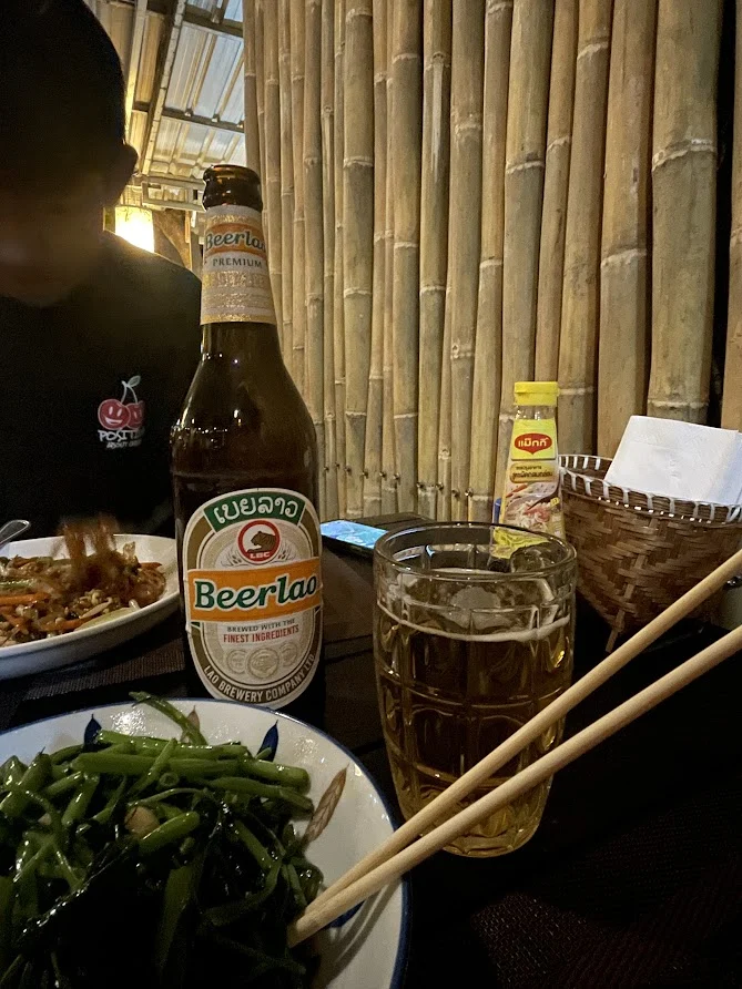 저녁 즈음 숙소에 도착해서 샤워를 하고 숙소에서 400m 떨어진 뱀부 레스토랑에서 저녁을 먹었다. 서양 관광객들이 주로 오는 듯 우리를 빼고는 전부 서양인이었다. 맥주 한 잔을 마시며 하루를 마무리하고 나오는데, 대기 인원이 기다리고 있었다. 맛집인 모양이다.