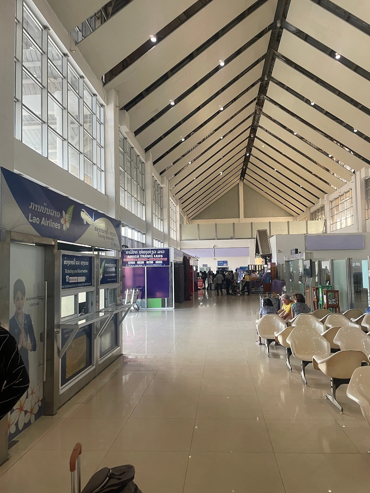 방콕 돈므앙 공항에서 원래 출발 시간보다 30분이 연착되었지만, 도착시간에 늦지 않게 비행기는 맑은 날씨의 라오스 루앙프라방에 미끄러지듯 활주로에 동체를 닿고 착륙을 했다. 4번째 나라에 도착했고, 도착하자마자 라오스 공항에서는 할 일이 많다. 라오스 고속철도를 예약하려면 라오스 전화번호가 있어야 해서, 일단 유심을 10일 15기가 사용으로 2달러에 구매했다. 구매하자마자 라오스 철도 앱에 가입하여 이틀 뒤 고속철도를 예매했다. 점심시간 즈음은 매진이고 아침 1등실도 남은 표가 3매가 안되어 예매를 못하고 저녁 시간표를 간신히 예매했다. 다음으로 태국에서 남은 밧과 달러를 낍으로 환전하고 미니버스를 3인 100,000낍에 탑승하여 저녁 시간 무렵 숙소에 도착했다.