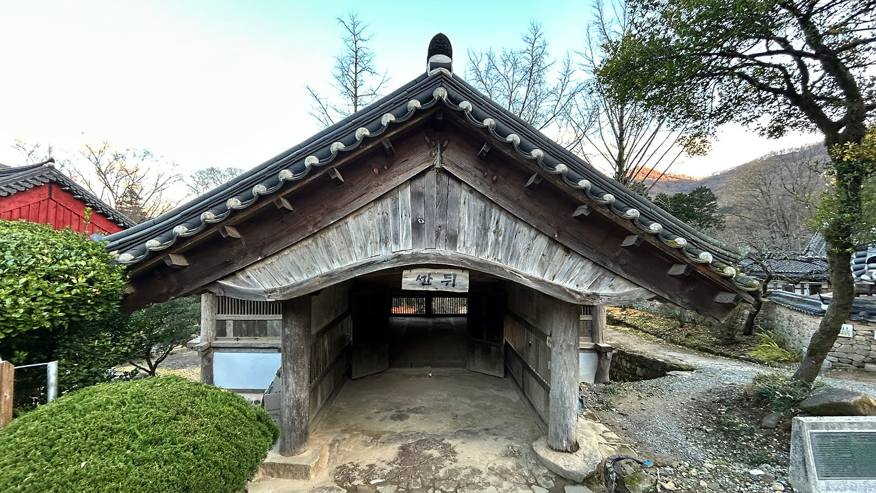 선암사 주차장에 버스가 멈췄다. 항상 제일 먼저 내리는데, 뒤에 사람이 내리길 기다리는데, 선글라스가 떨어졌다며 주워 주는 게 아닌가? 그렇게 찾아도 없더니 어디서 나타난 것이냐? 감사를 표하고 내렸다. 시간이 늦어 왕복 2.2km 거리 이동을 포함하여 한 시간의 시간이 주어졌다. 고프로를 들고 영상을 찍으며 조계산 아래 위치한 산암사를 계곡을 따라 이동했다. 낙엽이 지고 앙상한 가지의 길 위에서 녹음이 펼쳐진 길을 상상하는 것도 여행의 또 다른 맛이다. 짧은 시간이라 급하게 사찰을 둘러보았다. 가장 인상 깊은 것은 단청을 새로 하지 않아서인지 고찰의 느낌이 난다는 것이었다. 18세기 새롭게 지어진 사찰임에도 우리나라에서 가장 오래된 목조건물인 안동의 ‘봉정사 극락전‘을 보는 듯했다. 오르내릴 때 보인 아치교도 상당히 아름다웠고, 목조 건물로 지어진 화장실이 ‘뒷깐’으로 명명되어 있었는데, 그 건물도 산사와 어울려 아름답게 느껴졌다.