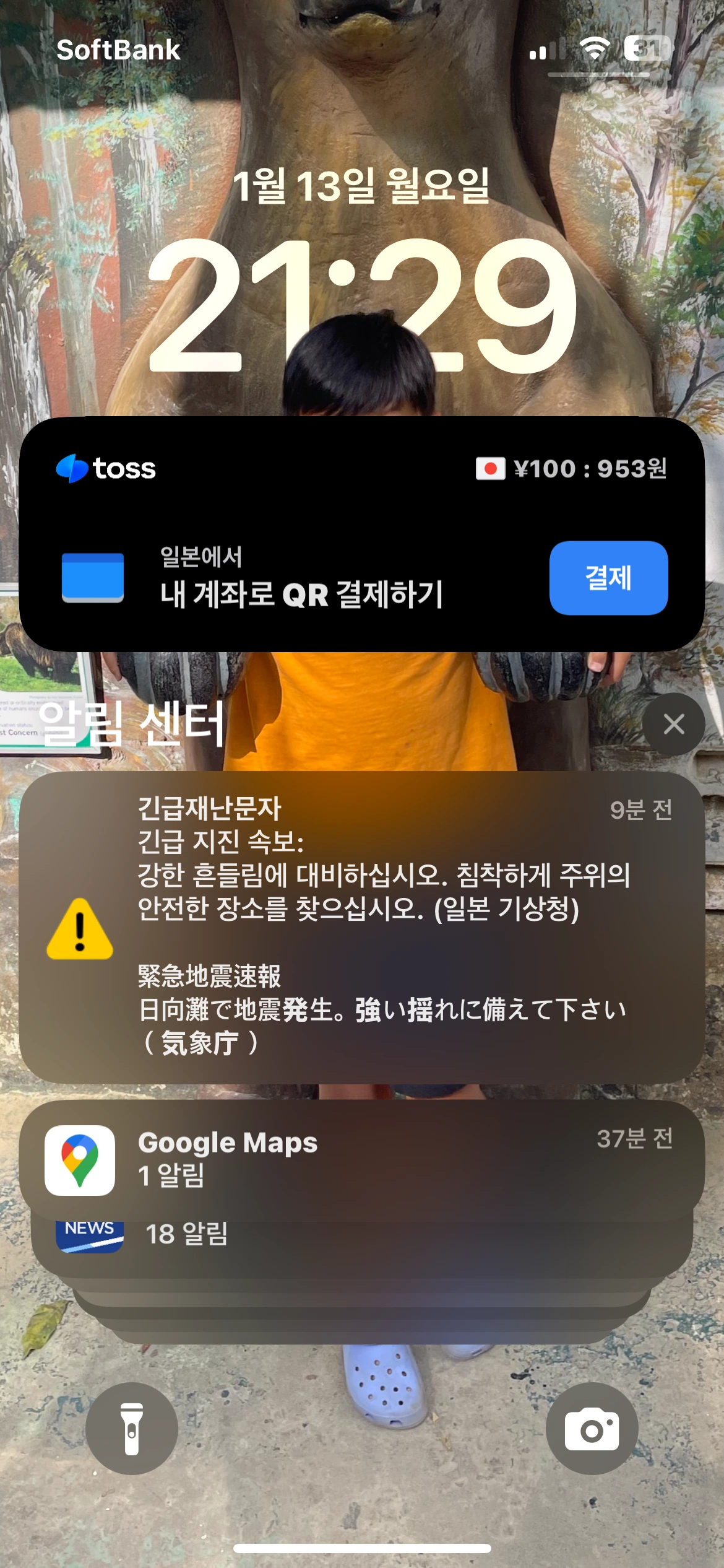 다양한 대화와 정보를 주고받으며 하루를 마무리하는 술자리는 완벽했다. 처음엔 어색했던 숙소의 분위기도 시간이 흐르니 적응되고 아늑하게 느껴졌다. 아름답게 마무리되는 우리의 첫날은 이 사건이 터지기 전 까지는 완벽한 듯했다. 이 사건은 바로 지진! 맘 편하게 술을 마시고 있는데, 휴대전화에서 지진이 발생했다는 말과 함께 건물이 흔들리기 시작했다. 급하게 우리는 몸을 피해 건물 밖으로 이동했고, 그 이후에도 여진이 몇 번 반복됐다. 급하게 나오느라 대부분 신발도 신지 않고 맨발로 건물 밖에서 이어지는 여진을 느끼며 공포에 휩싸였다. 이후 뉴스를 통해 확인한 강도는 진도 6.8 정도였다. 하지민 지진이 잦아들고 심신이 안정되자 우리는 지진의 에피소드와 여행의 대화로 남은 시간을 보내며 첫날을 마무리했다.