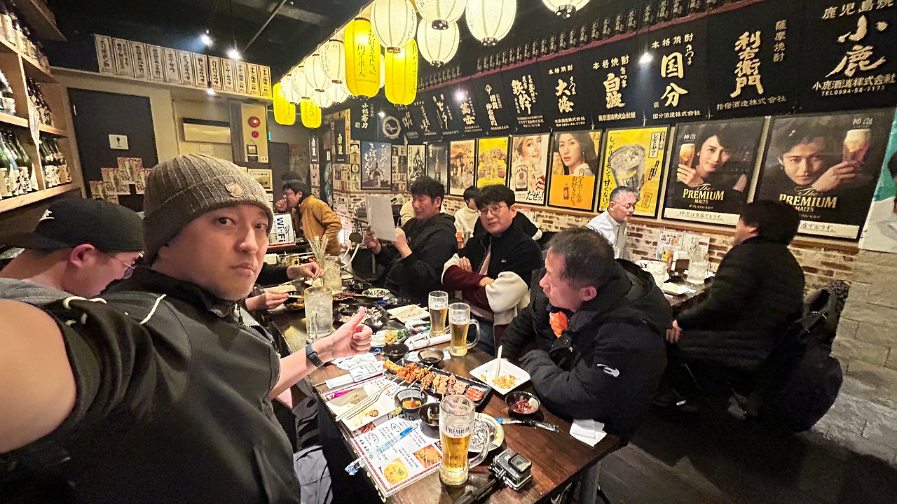 사쿠라지마 여행을 끝내고 다시 페리에 자동차를 싣고 가고시마로 돌아와 숙소에 짐을 풀었다. 주차장을 못 찾는 이슈가 발생했으나 달리기 선배의 몸으로 때우는 주차장 찾기와 일본어 전문회화 선배의 임기응변으로 무사히 차를 주차하고 가고시마의 중심가인 덴몬칸 골목에서 3차에 걸친 술자리를 가졌다. 두 번째 간 980엔(세금별도) 짜리 90분 무제한 술을 제공하는 술집인 Chikaivhi라는 이자카야에서 술을 너무 무식하게 마셔서 다들 체력을 방전하고야 말았다. 하지만 방전이 덜 됐는지 편의점에 들러 술을 더 사 들어왔고 밤 산책을 나간 팀도 얼마 지나지 않아 들어왔고 새벽 2시가 다 되어서야 잠자리에 들었다.