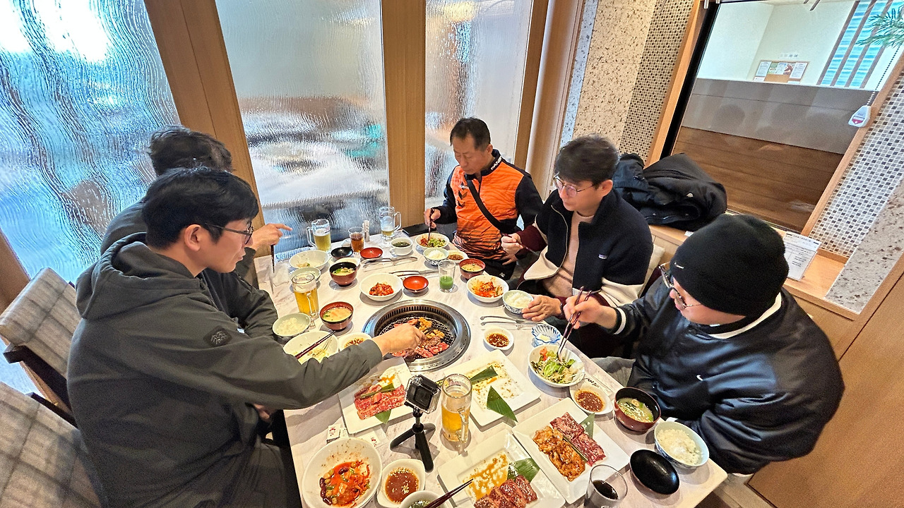 아침도 먹지 않아 슬슬 배가 고파와서 이동경로상에 위치한 야끼니꾸 가게에 들러 점심을 먹었다. 고기를 얼마나 먹었는지 거의 고기 무제한 요금만큼이나 나왔지만, 이때를 위해 모은 돈이니 부담 없이 점심을 즐기며 반주로 생맥주 10잔을 나눠 마셨다. 다들 술과 음식에 진심인 사람들이다.