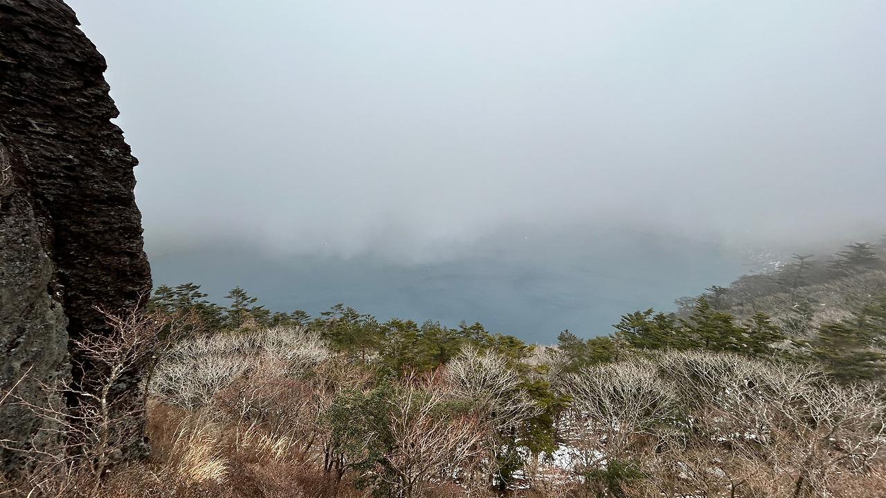 오나미노이케는 해발 1,241m의 고지대에 있는 일본 최대의 산 정상 화구호로 코발트블루의 물을 자랑하는 일본 최대의 화구호로 등산을 계획한 홍 모 씨는 500m만 올라가면 된다고 했으나 실제 등산 거리는 1,200m로 두 배기 넘었다. 우리는 속았지만 어쩔 수 없이 묵묵히 매서운 바람이 몰아치는 호수를 향해 걸었다. 40분쯤 되어 도착한 화구호는 주변 구름과 안개로 모습을 드러내지 않았다. 아쉽지만 화구호 옆 대피소에서 맑은 날씨의 화구호의 모습을 확인하는 것으로 만족하고 하산을 했다.