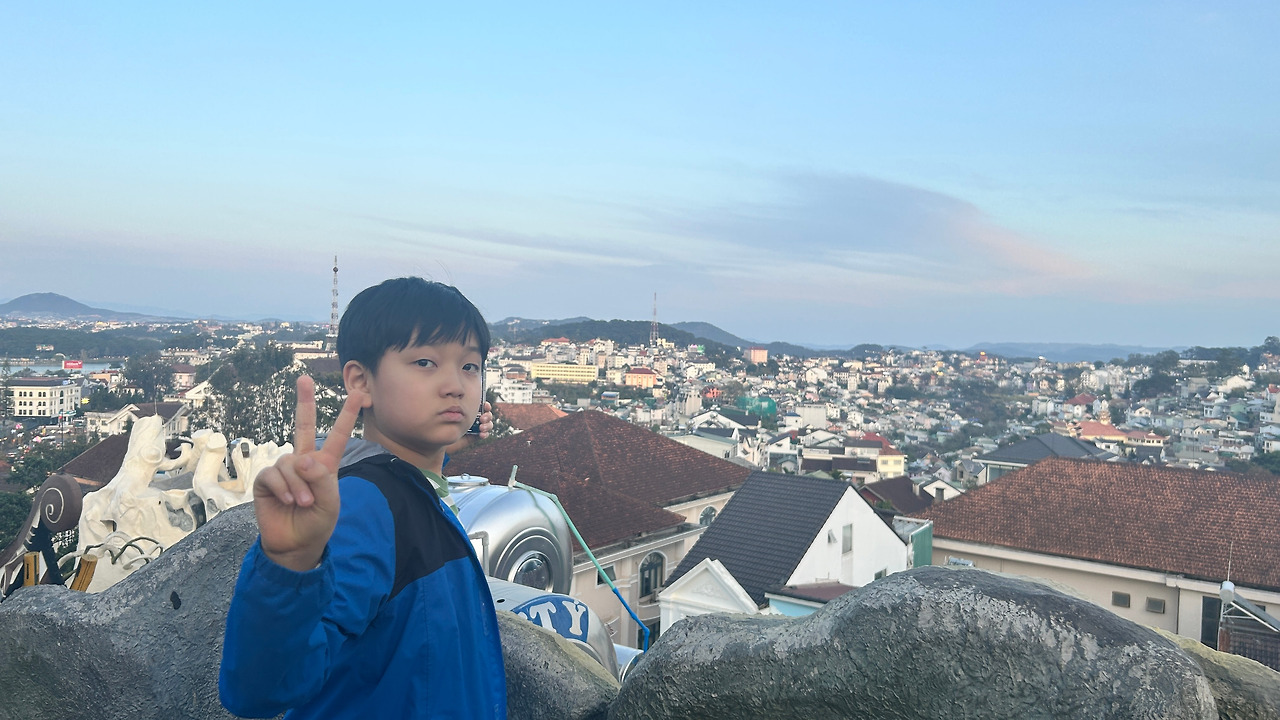 설마 점심시간이 다가와 그러겠지 하며 빨리 끝나겠지 하는 희망 섞인 생각은 2시간이 자나서야 입국심사를 완료한 우리들을 경악시키기 충분했다. 이때부터 모든 일정이 꼬이기 시작했다. 11:00 도착 비행기를 기다려 우리를 딜랏으로 태워갈 사전 예약한 차량 기사도 우리를 기다리느라 지쳐 보였다. 비행시간의 피로함은 여행의 기대로 버텼지만 입국심사장에서 허비한 2시간은 체력을 한계로 몰았고 뒤이은 3시간이 넘는 차량이동도 얼마 남지 않은 체력을 소진케 했다. 차는 달려 5시에 달랏의 숙소에 우릴 내려줬다. 장장 12시간의 이동이 완료되는 순간이었다. 구불구불한 산길을 안전하면서도 빠르게 이동한 기사님께 10만 동(5,800원) 팁을 드리고 짐을 풀고 쉬기로 했는데, 아이들이 늦었지만 크레이지 하우스를 가 보자고해서 짐만 풀고 1.2km 거리를 걸어 해당 장소에 도착했다. 18:00까지만 관람이 가능해 입장이 거부돼도 이해할만한 17:40쯤 도착했지만 입장이 가능했다. 관람시간이 모자라 구석구석 자세히 보지는 못했지만 아이들도 나도 만족한 관람이었다. 여기에 늦어서 아쉬운 면을 채워줄 석양의 모습이 관람시간의 짧음을 위로하기 충분했다.