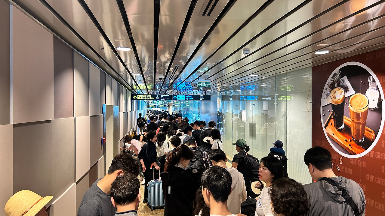 새벽 5시 알람이 울린다. 처가 식구들 해외여행에 유튜브 촬영을 핑계로 꼽사리를 끼었다. 구독자 수 93명에 어제 한 명이 구독을 취소하여 92명이 되었다. 새벽 4시에 일어나려는 아내를 말려 5시에 일어나 택시를 타고 대구공항에 도착하니 인천공항이나 김해공항에 비해 한산하기 그지없다. 냐짱(나트랑)으로 떠나는 모임에 앞서 우리 가족은 2일 일찍 출발하여 달랏을 여행하기로 했다. 11시에 달랏 깜란 국제공항에 착륙한 비행기는 버스로 우리를 입국 심사장으로 나르기 분주했다. 입국심사장에 도착한 우리는 분주함을 넘어선 인파에 경악을 금치 못했다. 입국을 대기하고 있는 줄이 2-3명씩 모여 150m에 이르고 있었다.