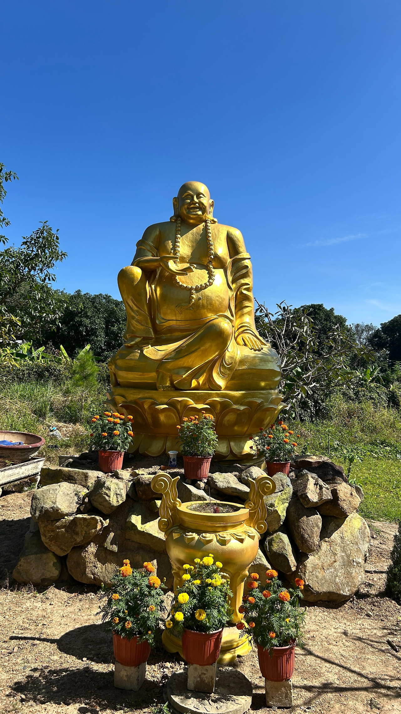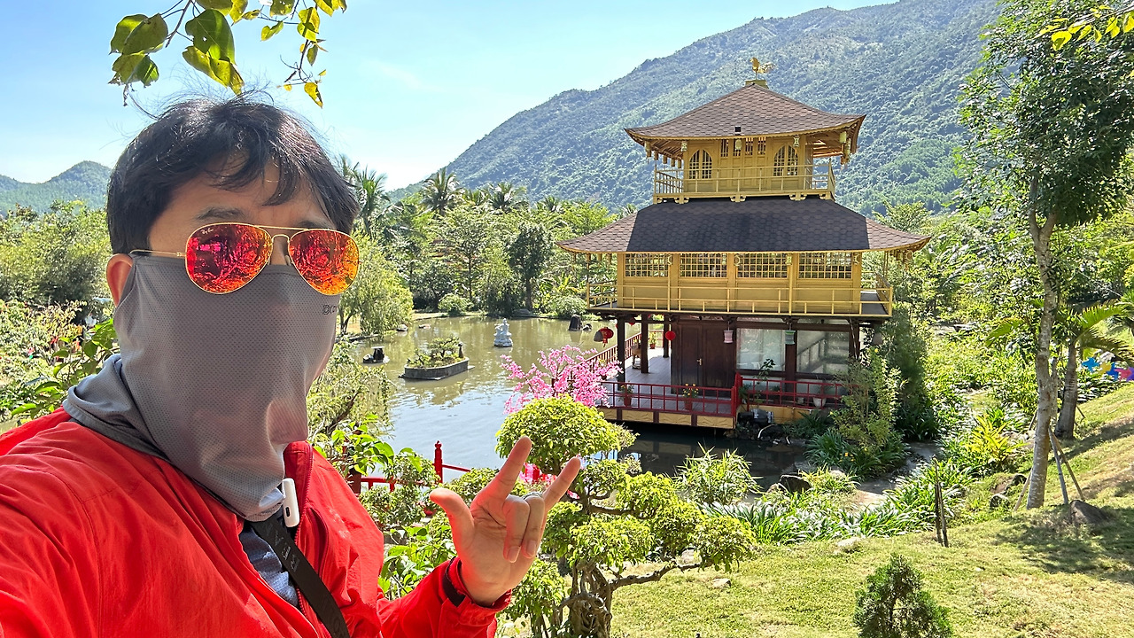 숙소로 돌아와 조식을 먹고 하루 일과를 시작했다. 아이들과 처가 식구들은 조식을 먹고 쉬다가 수족관을 간다고 했고 여자들은 페디큐어를 받으러 간다고 해서 난 한 시간 일찍 리조트를 나와 Nghai son 사원으로 오토바이를 달렸다. 도심을 벗어나 외곽으로 나가니 공기도 맑고 복잡했던 오토바이도 사라지고 드라이브할 기분이 났다. 30분쯤 달려 사원에 도착했고 입구에 주차를 하고 잠깐 둘러보는데 10분 정도면 충분할 면적의 사원인데, 특이할 만한 건 교토의 금각사와 하노이의 한 기둥 사원을 본뜬 건축물이 있어 베트남 사람들에게 인기가 많은 듯했다. 특히 금각사 앞은 사진을 찍으려는 베트남 여인들로 장사진이었다.