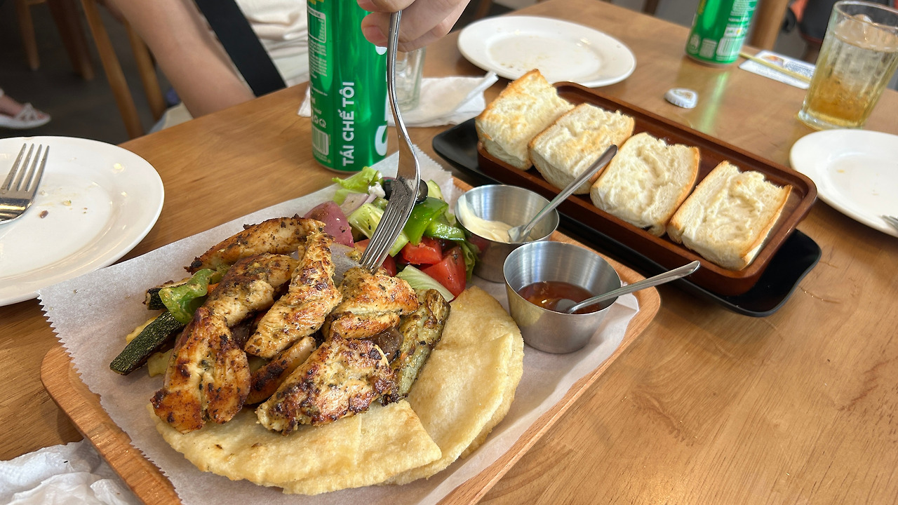 점심은 나의 의견이 반영된 그리스 음식점인 ‘그릭키친‘으로 정했다. 14명이 디 들어갈 수 있겠나 싶었지만, 2층이 비어 있어 함께 식사를 할 수 있었다. 맥주도 사이공 라거 450ml가 천 원이 하지 않았다. 이번 여행 중 극강의 맥주 가성비 집이라 더 마음에 들었다. 물론 음식도 깔끔하고 직원도 친절해서 즐겁게 한 끼를 먹을 수 있었다.