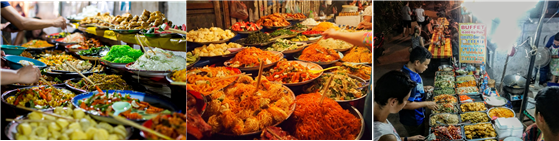 수도인 비엔티안의 메콩강변에서 인도식당에 들러 강을 바라보며 먹은 탄두리 치킨, 방비엥에서 아직 관광지화 되지 않은 블루라군을 지나오다 먹은 길거리 음식도 기억이 나지만, 라오스에서 먹은 음식 중에 아직 생생한 기억으로 남아있는 것은 루앙프라방의 5,000낍(600원) 뷔페였다. 지금은 그 가격이 올라 15,000낍(1,800원)으로 올랐다지만, 그곳에서 처음 먹은 야시장 한 편의 뷔페는 지금도 잊지 못할 추억으로 남아있다. 지금은 야시장 골목 안에 많은 뷔페집이 생겨서 성행하고 있지만, 내가 처음 갔을 당시인 2008년 즈음엔 야시장이 시작되는 입구인 '조마 베이커리' 옆골목에서 작은 규모로 영업을 하고 있었다.