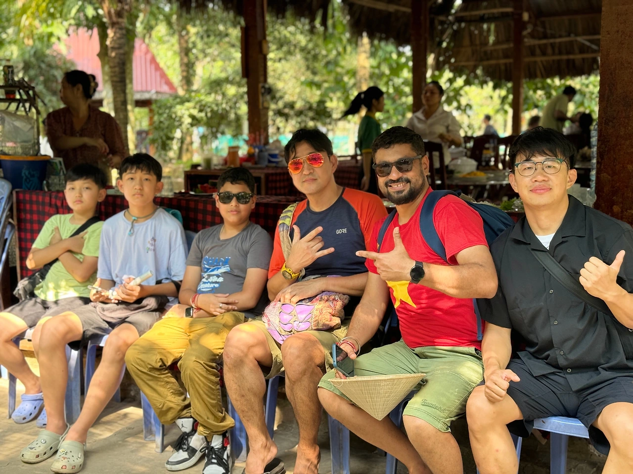 이런 투어가 끝이 나면 점심식사를 하는데 식사하는 장소가 예전에 비해 많이 발전된 느낌이었다. 식사도 대규모로 이루어지고, 식사 후엔 노를 젓어 작은 메콩강 지류를 탐방하는 형태로 이루어진다.