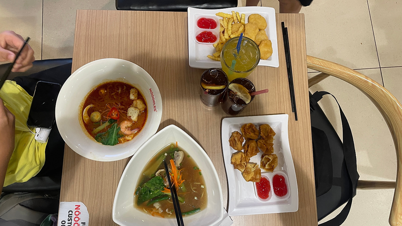 두 번째 불행이 결정적이었다. 비행기가 연착되어 4시간 40분이 지연되었다. 페낭에서 21:45 출발한다는 것이었다. 모든 일정이 꼬이기 시작했고, 두통이 밀려오기 시작했다. 불행 중 다행인 것은 아이들은 나보다 정신적 충격이 적었다는 것. 출국 수속을 하기 전 공항에서 최대한 시간을 보냈다. 시간은 엄청 더디게 흘렀고 4:30 체크인을 하려 줄을 섰다. 발권을 하는데 항공사에서 지연에 대한 보상으로 20링깃(5,800원)의 바우처를 제공하였다. 아이들과 스타벅스에서 벤티 사이즈 음료를 시키고 또 시간을 보냈다. 휴대폰 게임과 원카드 게임이 없었으면 아이들도 지쳤을 것이다. 7시까지 버티다 출국수속을 하였다. 다른 항공편과 겹치지 않았는지 출국수속은 일찍 끝이나 저녁 7:25분이 되었다. 아직 출발시간은 2시간 하고도 20분이 남아있었다. 저녁으로 면세구역 식당에서 3만 원 치 음식으로 배고픔을 해결했다.