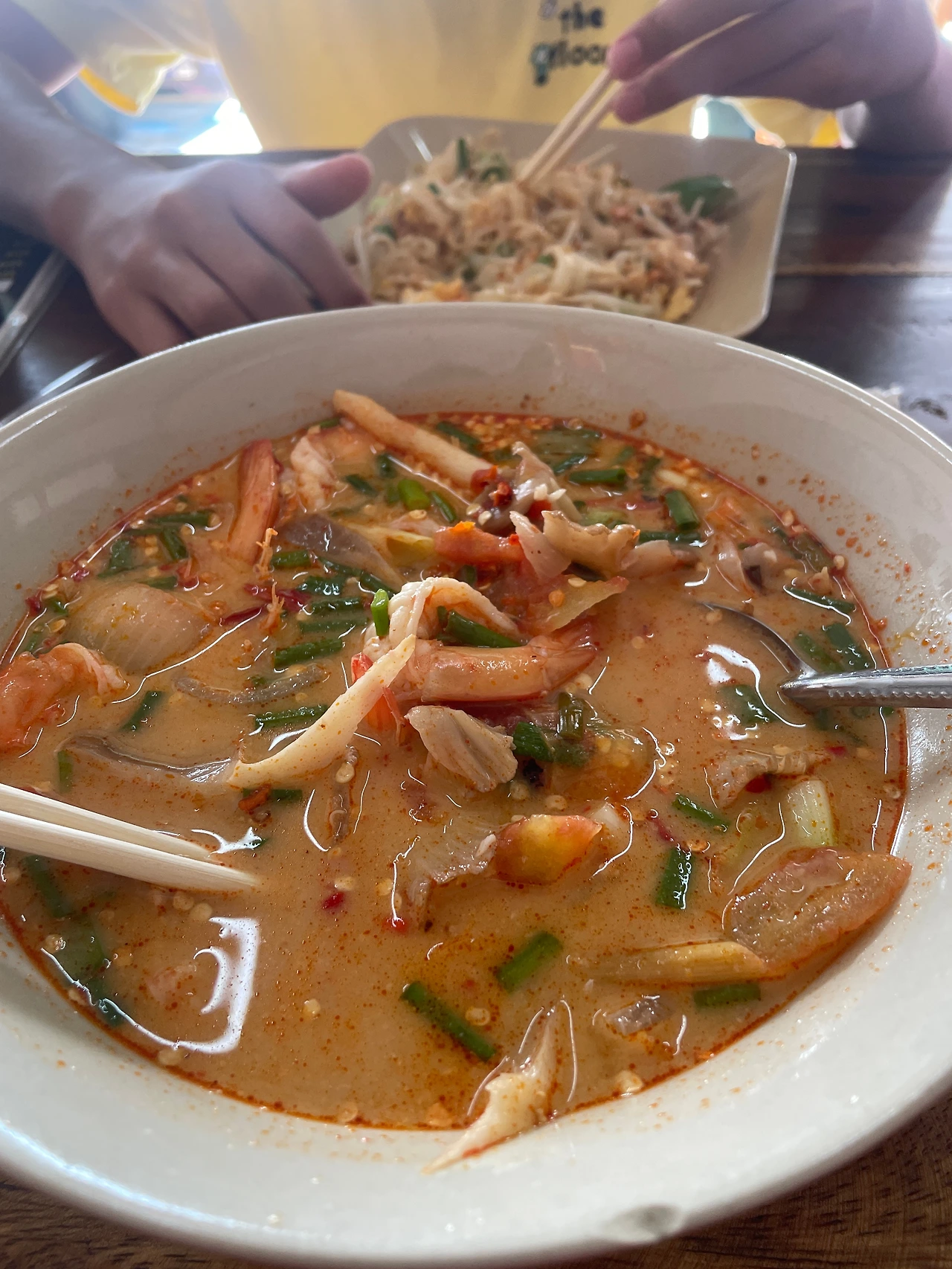 두 번째 비치는 내가 푸껫 오기 전부터 꼭 가보고 싶었던 해변이었다. 오토바이가 없으면 차를 불러 내렸다가 다시 차를 부르고 하기엔 너무 복잡하고 비싸서 오토바이를 고친 김에 꼭 오고 싶어서 오후 일정으로 실행했다. 결과는 대만족. 푸껫에서 가장 맘에 드는 장소였다. 사람이 많지도 적지도 않고 적당하고 두 곳의 작은 바에서 음식과 음료도 팔고 있었다. 무엇보다 물도 깨끗하고 수심도 완만히 깊어져서 아이들이 놀기에도 적당했다. 해변엔 가족단위 외국인과 연인들이 주를 이뤘다. 이곳에서 일몰까지 보고 오고 싶었지만, 첫째가 바위에 찍혀 발바닥을 다치고 내일 일찍 공항으로 이동해야 해서 17:00에 짐을 싸고 숙소 주변에 있는 식당으로 향했다. 오토바이가 있으니 역시 기동력이 뛰어나 많은 시간과 비용을 줄일 수 있었다. 푸껫에서 마지막 저녁은 야시장 옆 현지 식당으로 정하고 역시나 본인이 먹을 것을 정하고 마지막 식사를 즐겼다.