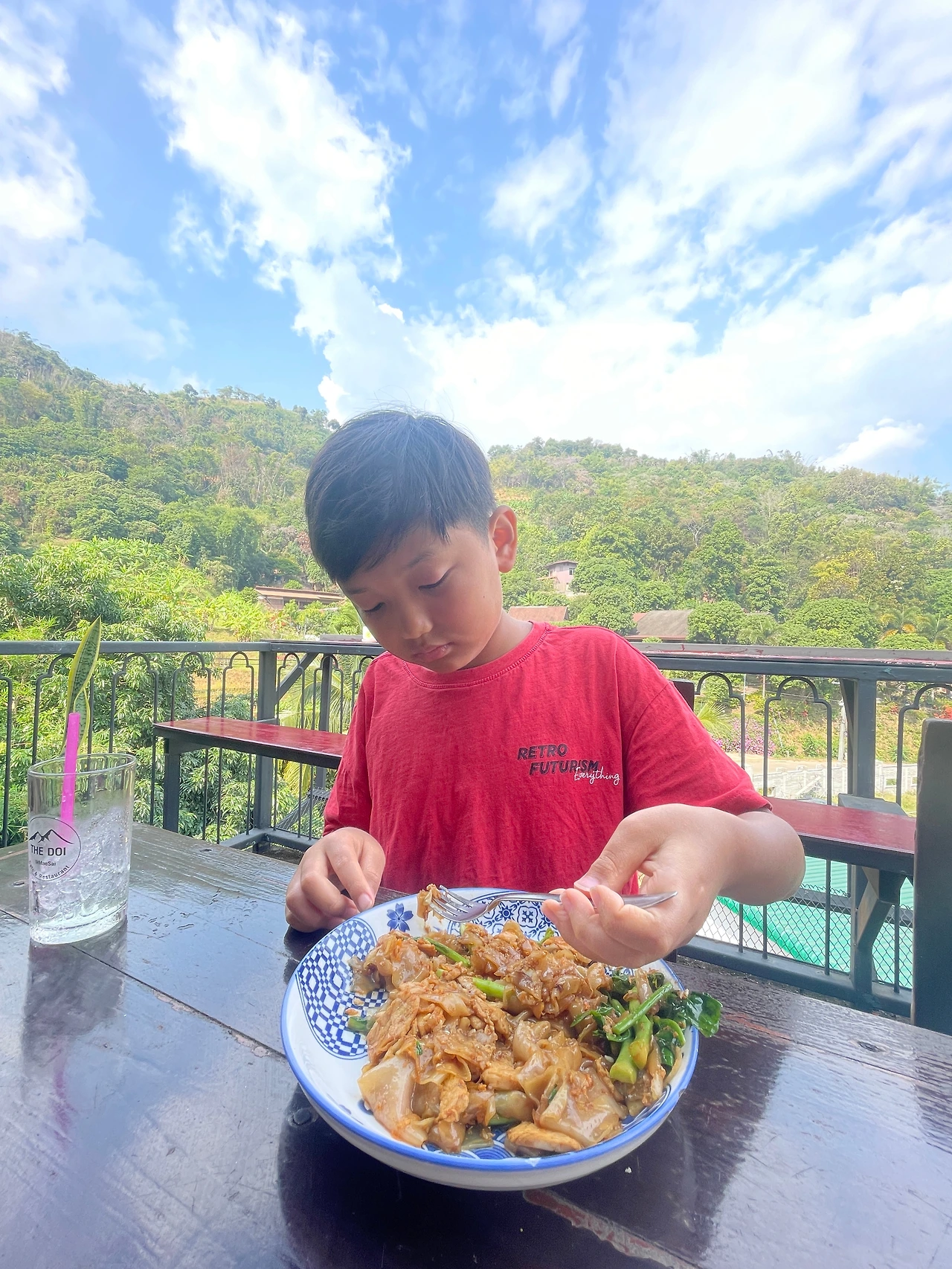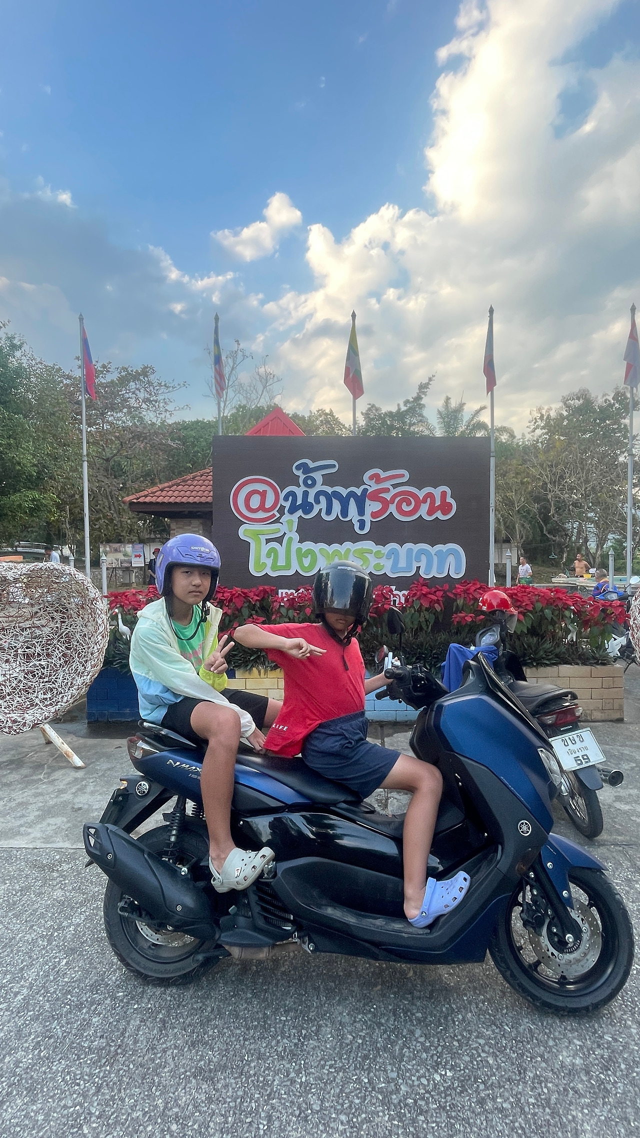시간은 한 시간이고 처음엔 둘째가 뜨겁다고 거부하다 셋이서 탕 속에 들어가 피로를 풀었다. 한 시간 후 개운한 맘으로 온천을 나와 인근 국숫집에서 번역 앱을 돌려가며 3그릇을 시켜 저녁 식사를 했다. 배낭여행 중 먹은 최저 가격 식사였다. 3그릇에 135밧을 지불하고 앵무새기 있어 아이들이 좋아했던 식당을 나와 숙소에 도착했다. 200여 km에 달하는 대망의 라이딩이 끝나고 다들 소리소문 없이 일찍 잠들었다.