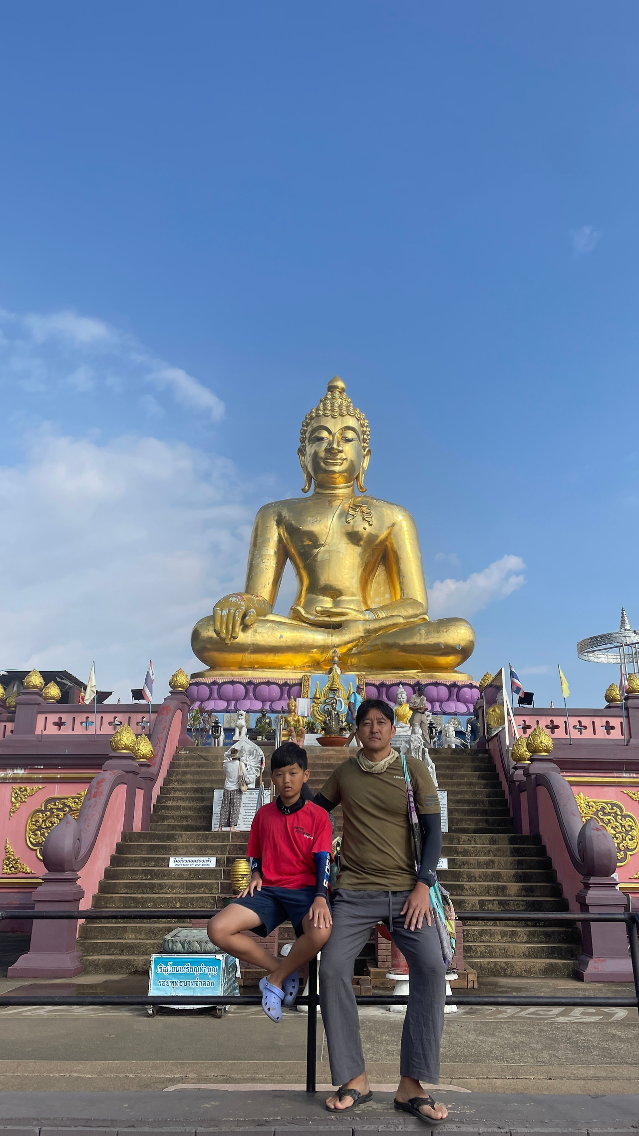 첫 목적지는 골든트라이앵글이었다. 숙소에서부터 70km 떨어진 곳으로 고속 국도 같은 곳을 아이 둘을 태우고 한 시간을 달려야 한다. 중간에 음료라도 마실 곳이 있으면 쉬었다 가려고 하였으나 고속국도 같은 도로가 거의여서 도착하고 좀 쉬기로 했다. 한 시간여를 딜려 15년 만에 다시 골든트라이앵글을 찾았다. 그때는 버스터미널에서 버스를 타고, 다시 성태우를 타고 시간이 많니 걸렸는데, 이번엔 오토바이로 편하게 온 편이었다. 아이들에게 장소에 대한 설명을 해주고 어젯밤에 사놓은 과일과 음료를 마시며 국경의 다양한 모습을 설명했다. 라오스 쪽은 카지노 사업의 열기로 마카오 같은 카지노 건물들이 들어선 것과 대비하여 태국과 미얀마의 국경마을은 우리네 시골 마을과 다를 바 없었다.